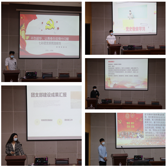 决赛终审答辩活动在庆祝中国共青团成立100周年主题宣传片《共青春》主题曲《有我》的恢弘曲调中拉开帷幕,各团支部代表通过精心制作的短片向在场评委和观众全面介绍本支部的建设工作,以PPT演讲的形式向大家介绍他们团支部在各项组织建设中如何发挥模范带头作用和目前创建所取得的成就。在思想引领方面,建筑212和土木201班团支部以主题团日活动为契机,展示了学习习近平新时代中国特色社会主义思想尤其是习近平总书记关于青年工作的思想、党的十九大及十九届历次全会精神、党史学习教育等方面的记录图片,并结合各团支部特点开展团员思想教育评议等活动,做好思想引领工作。在学风建设方面,建筑202和工程212班团支部用短视频展示了同学们迎战疫情,刻苦学习的精神,以及自入学以来取得的学习成果。在组织建设方面,给排水202和给排水211班团支部展示了班团一体化建设成果,围绕班级纪律、班干团队、班风班貌等进行建设,成效明显。在创新创业方面,土木212和工程201班团支部成员展示了支部成员的创业认识和创业计划,大家积极参加各类创新创业实践活动,获得各类竞赛奖项。在志愿服务方面,建筑211和土木214团支部成员有强烈的志愿服务意识,大家利用课余时间积极参加“团百花”学雷锋等志愿服务行动,奉献自我、完善自我,实现自我在志愿活动中的人生价值。在社会实践方面,给排水201和建筑201团支部积极引导组织成员参加各类社会实践活动,在做好疫情防控的同时,加强团员的思想意识和实践创新能力,取得了一定的荣誉奖项。在新媒体建设中,土木203和土木211团支部展示了新媒体组织运营方式和作用发挥情况,在疫情常态化防控期间通过网络平台发布、开展、记录活动的形式展示了他们在新媒体工作的成效。