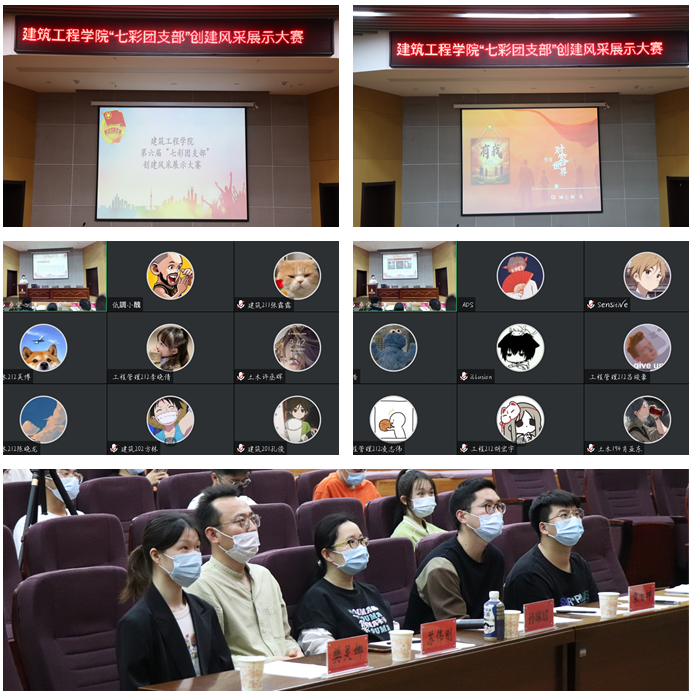 在“五四”青年节即将到来之际,为进一步落实习近平总书记考察调研中国人民大学讲话精神,建筑工程学院第六届“七彩团支部”创建风采展示大赛于4月27日晚上在C座三楼报告厅以视频形式举行。校团委组织宣传科副科长孙琳瑶、艺术学院团委袁自坤,建筑工程学院团委书记苏伟刚等担任评委。