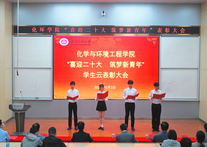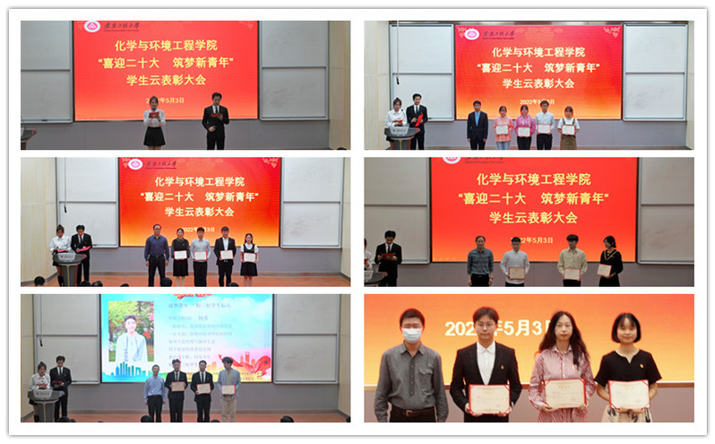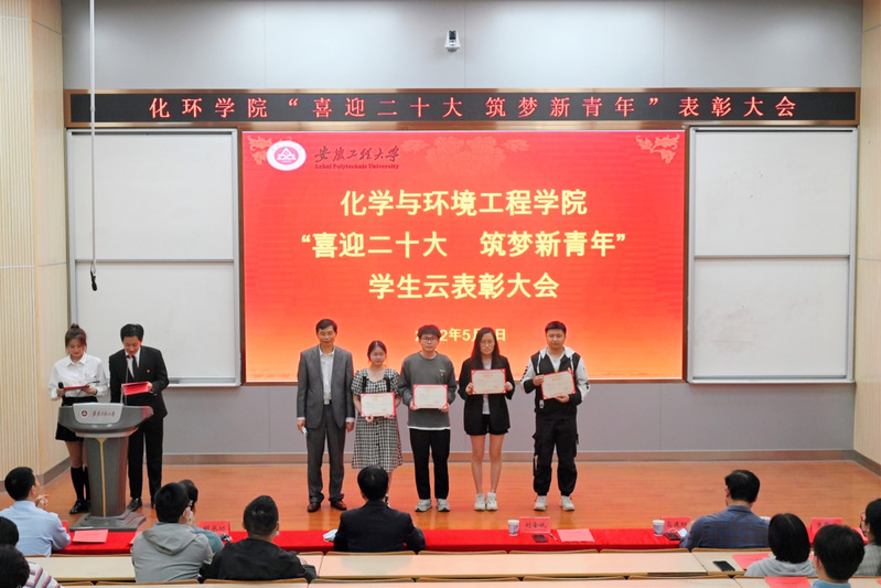 百年初心如磬,青春奋楫笃行。为献礼党的二十大,致敬建团百年,展示学院人才培养取得的成绩,5月3日晚,化学与环境工程学院举办“喜迎二十大 筑梦新青年”优秀学生云表彰大会。学生处处长刘金斌、化环学院党政领导出席大会,学院团委书记、科级干部、各系部主任及全体辅导员、兼职辅导员、班主任、部分学生干部代表参加本次大会。同时,会议采用校团委视频号进行线上同步直播,全校2000余名学生同步在线观看,累计超过4000人“点赞”。