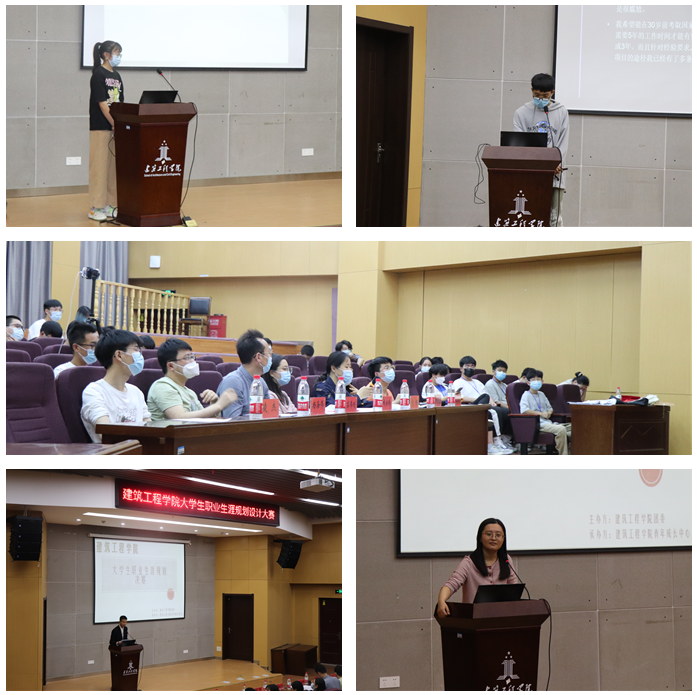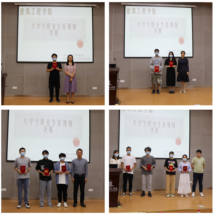 本次比赛分为主题陈述和现场答辩两部分。参赛选手以PPT演讲的方式,从自我认知、职业环境分析、职业目标确定、评估与调整等方面尽情展示了自己的职业规划。土木204金樊同学在陈述中引用职业规划基础理论及各项辅助工具,对自身各项指标进行探索分析。工程212李梦苓通过职场角色模拟VCR,结合自身专业,向在场观众展示了短期、中期和长期的职业规划。建筑212蔡镇漮结合专业发展,综合分析社会环境、家庭环境、学校环境等各方面的因素,制定了一个符合自己现实情况的规划方案。赛后,评委程安琪、刘畅老师分别对比赛进行了精彩点评。程安琪结合自己参加省赛的经历,指出大学期间正值职业生涯规划的黄金阶段,大学生应科学合理的规划自己的职业生涯,确定中长期发展目标,付诸行动,积极克服学习的盲目性和被动性。刘畅指出,职业生涯规划大赛对大学生个人的未来职业走向和职业发展有着重要影响,大学生应分阶段设定目标,结合专业、爱好和特长,做好大学生涯规划和职业生涯规划,科学实现两者的递进关系,从而在实践中实现自己职业理想和职业目标。经过2个小时的激烈角逐,土木204金樊荣获一等奖、工程212李梦苓、建筑212蔡镇漮获得二等奖、土木212陈晓龙等同学获三等奖、工程211吴梓恒等同学获优秀奖。