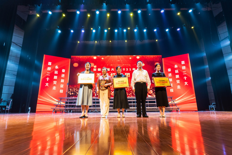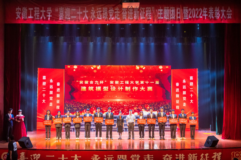 参加人员集体观看了校团委制作的庆祝建团百年青春合唱原创视频《理想》,共青团员重温了入团誓词,学校领导和嘉宾为2021年度省级及以上荣誉获得者,省级优秀毕业生,“安徽合力杯”第九届十佳大学生、第十一届大学生创业竞赛奖项获得者、建筑模型设计制作大赛获奖者,2020至2021学年校先进集体标兵、先进个人标兵、国家奖学金获得者,2021年度五四红旗团委、先进团支部、优秀共青团员、优秀共青团干部等代表颁奖。大学生艺术教育中心、学生社团以及相关学院的同学们围绕“逐梦、筑梦、燃梦、圆梦”主题,带来了情景朗诵、舞蹈、合唱、歌曲等精彩节目,以舞台艺术的形式展现青年大学生见贤思齐、争当榜样的自觉追求,许下青年大学生“青春心向党、建功新时代”的青春誓言。