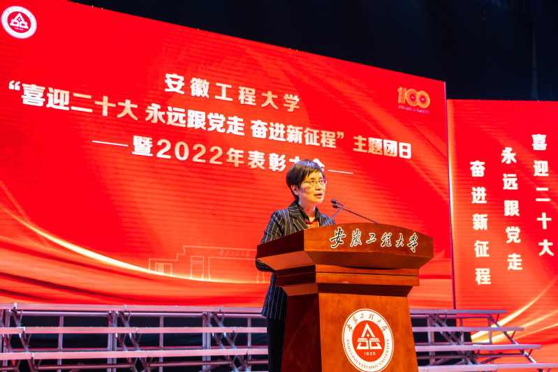 青春心向党,建功新时代。5月25日下午,学校在师生活动中心大礼堂举办“喜迎二十大 永远跟党走 奋进新征程”主题团日暨2022年表彰大会。校领导张志宏、王绍武、苏国红、叶常林、王红月、费为银、郑健,以及各学院党委主要负责人、分管团学工作负责人,各部门主要负责人,校院两级专挂兼职团干、辅导员,受表彰师生代表参加大会。安徽合力股份有限公司副总工程师毕胜以及安徽叉车集团相关领导等作为嘉宾应邀出席。
