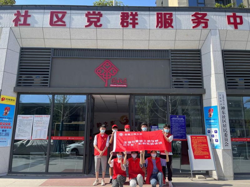 2022年6月17日上午,生物与食品工程学院20级学生开展以“青春三下乡,社区文明行”为主题的暑期社会实践活动。20级学生组成“城市文明先锋小队”前往芜湖市鸠江区神东小区,小队成员和工作人员一起开展了非机动车有序摆放、老旧横幅清理、参观神东社区文明实践站等系列活动。