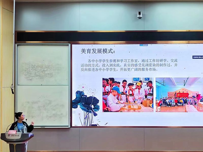 “浆染花”传统技艺传承志愿服务项目负责人王娅虹同学从自身的志愿服务经历入手,结合参加安徽省青年志愿服务大赛的心得体会,展示了部分桨染作品的精美照片,并着重分享了本草染织项目的起源和运营情况。朱闽海同学向大家分享了摄影经验和心得,为同学们从光线光感等方面详细讲解拍照方法和构图技巧,为各志愿服务团队提高宣传报道水平提供了一些有效的建议和方法。青年志愿服务中心陈妍蓉同学为大家介绍了“团百花”志愿服务活动的督导细则,详细讲解了不同团队的督导标准,重点介绍了“志愿汇”的使用方法及特色功能。