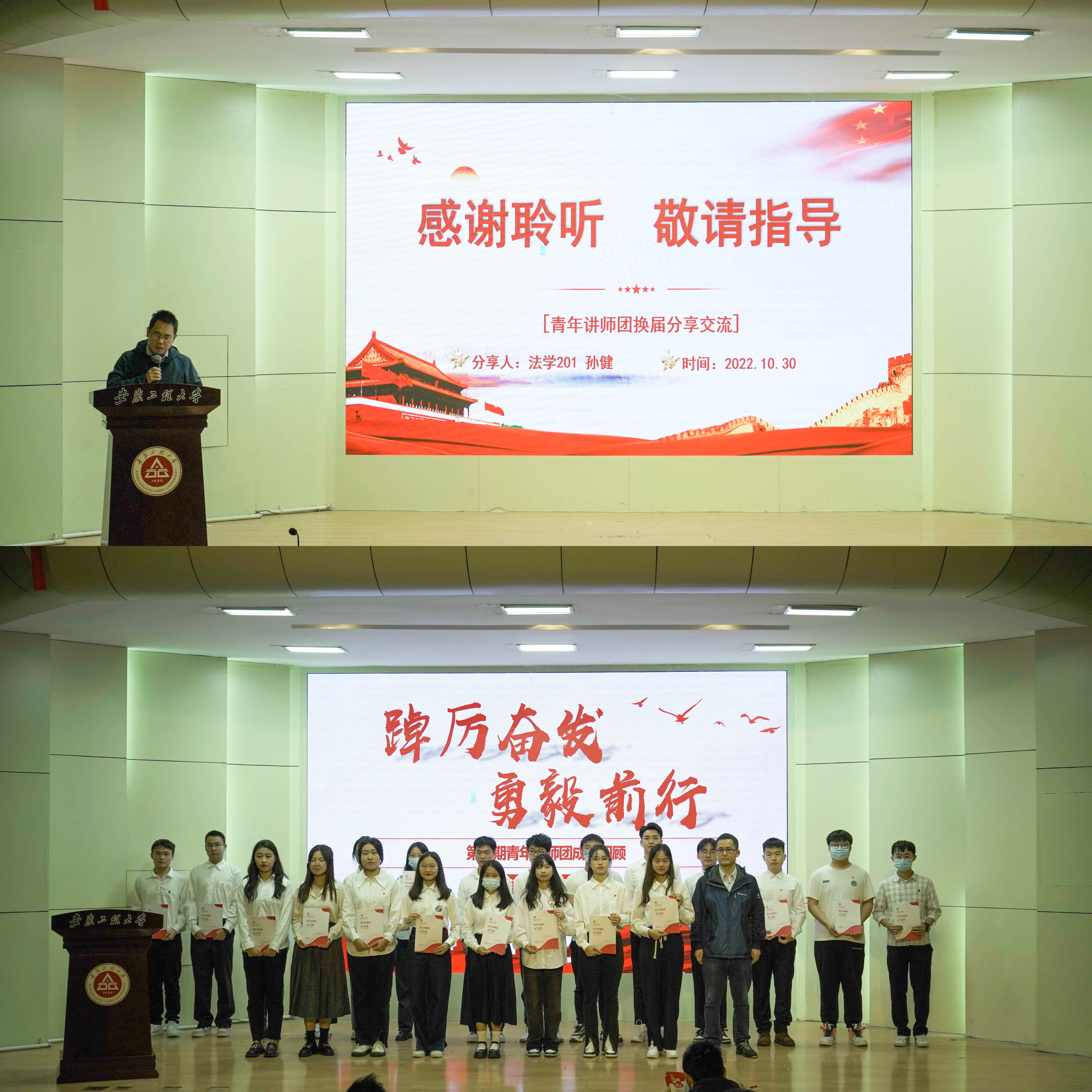 本次大会采用分批换届的形式,从青年讲师团、青年启航社到青年通讯站,展现了“三青”融汇贯通又各具特色。第四期青年讲师团团长杨雪总结汇报了近年来青年讲师团的工作情况和主要成绩,“十佳优秀宣讲员”代表孙健向新一届青年讲师团成员分享了经验。青年启航社离任副社长储伟和新任副社长马岩辉分别分享了对社团工作的感想和收获,并交接了社旗。22届青年通讯站站长李黄歆冉汇报了年度工作,“十佳通讯员”代表朱正阳分享了经验。