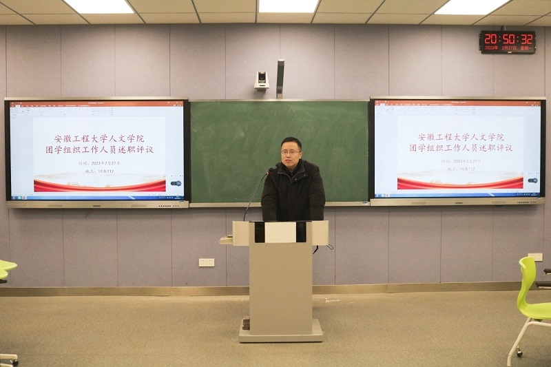 为深入学习贯彻党的二十大精神和习近平总书记关于青年工作的重要指示,落实学校“三抓”工作要求,深化团学组织自身建设,提升学生骨干的综合素质。2月27日下午,人文学院团学组织工作人员述职评议会在4J112举行。人文学院党委副书记王中江、学院团委书记、辅导员和学生代表参加并担任评委,会议由学院学生会主席团执行主席童萌主持。