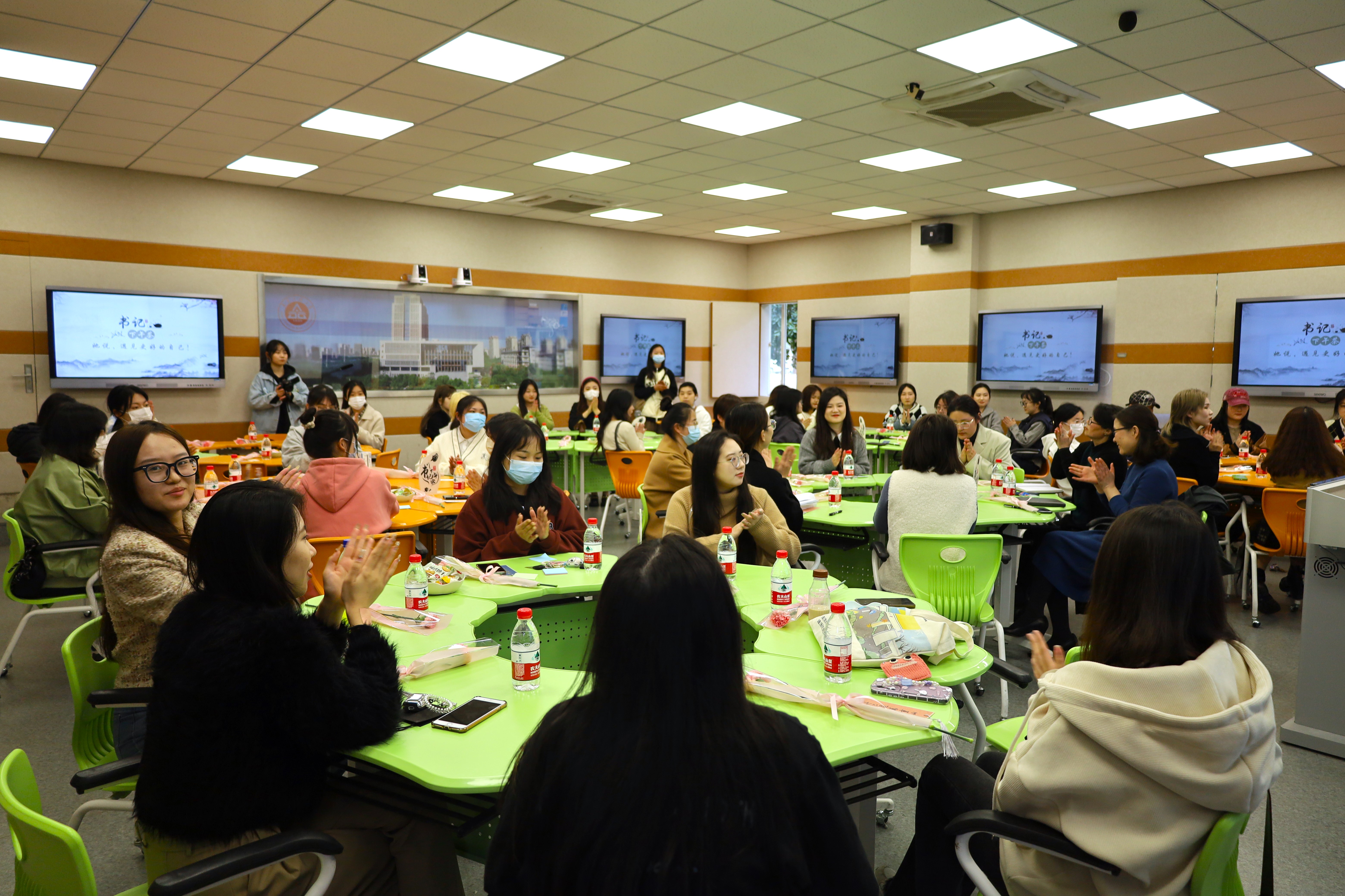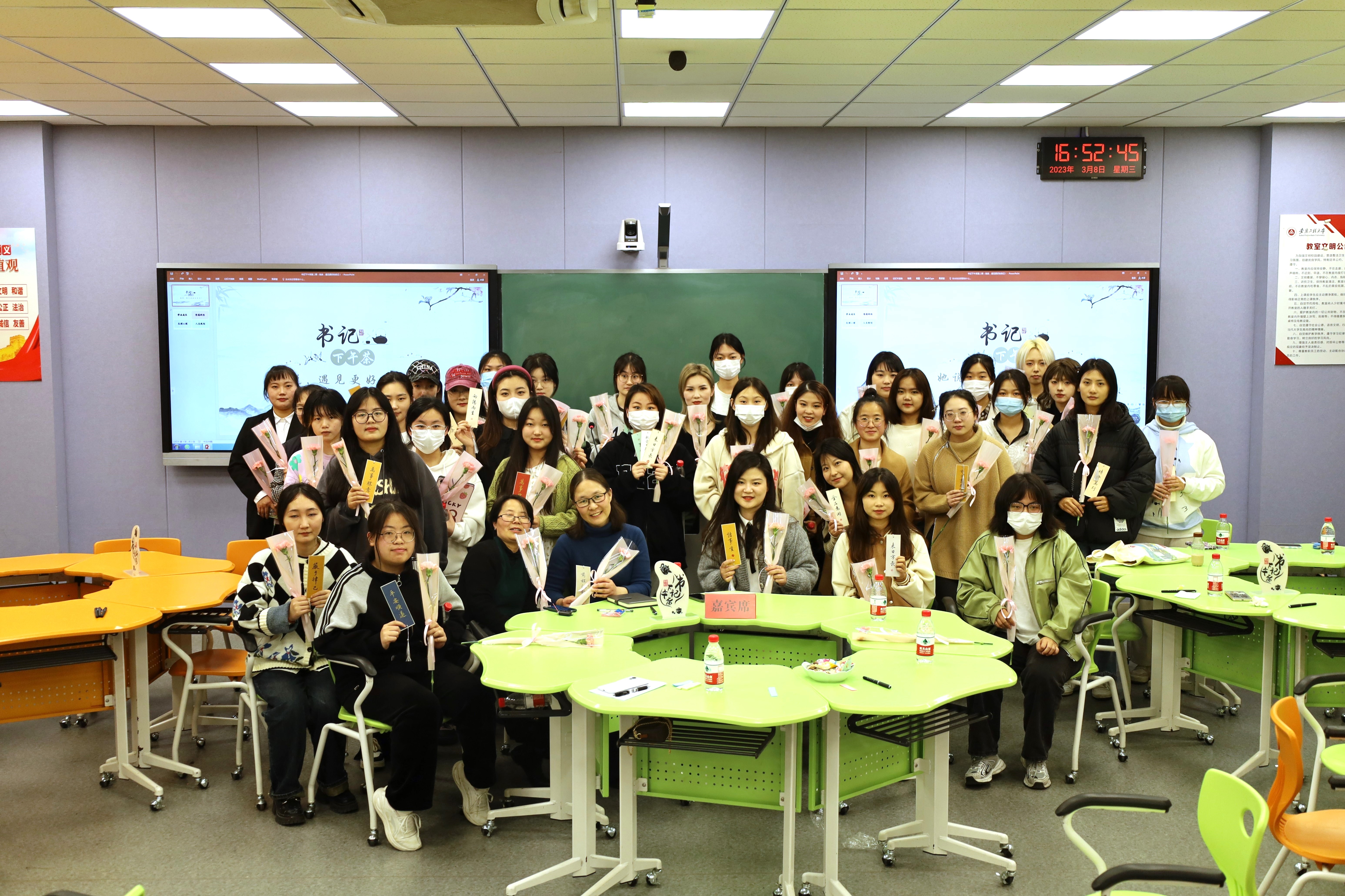 迟日江山丽,春风花草香。在3月8日这个暖意融融的春日下午,四教112的智慧教室里传来了阵阵的欢声笑语。走近一看,原来是设计学院在举办第二期书记下午茶“她说,遇见更好的自己”活动。设计学院党委副书记彭海燕,硕士生导师丁文霞,辅导员姚丽、黄淑怡、田潇濛、李荣杰老师、学生张梦瑶等50位女性代表一起围坐畅聊。