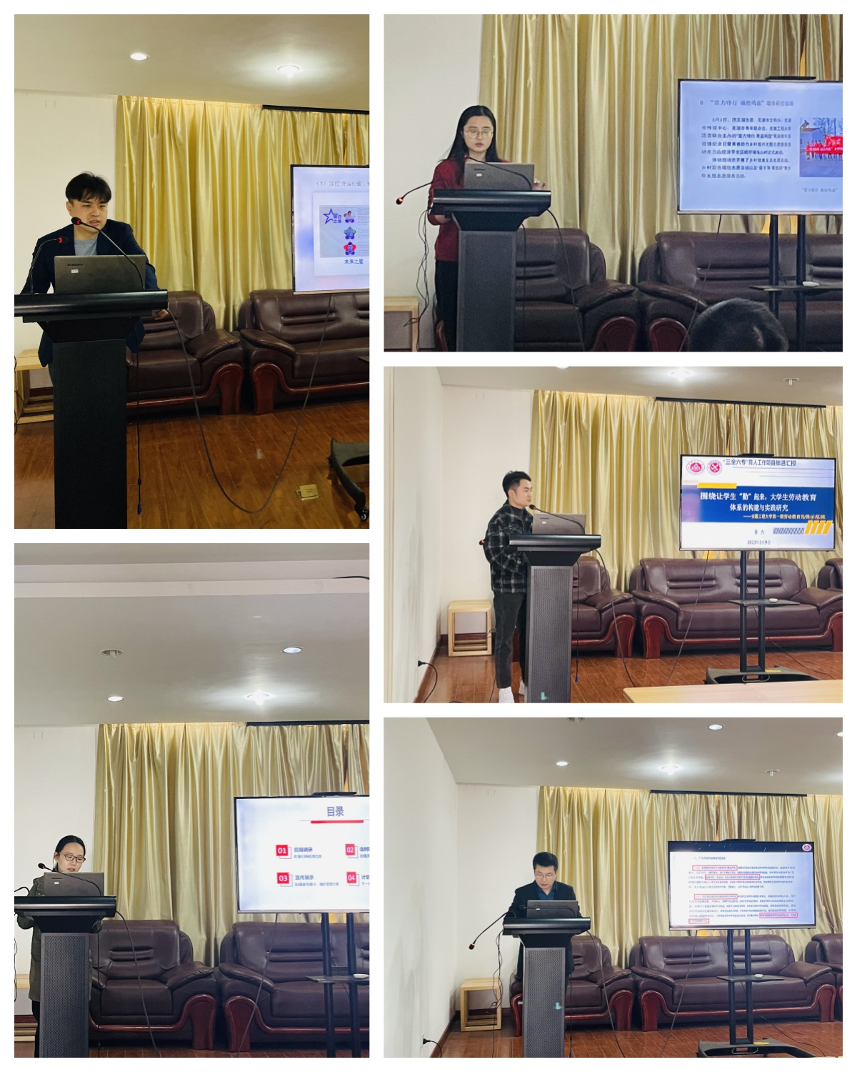 会上,各课题负责人从项目概况、项目进展、取得成果、存在问题及下一步计划等方面进行了详细汇报。截至目前,相关课题在“十佳大学生选育用工作机制”“校内外劳动教育体系建设”“家校联动的假期劳动教育实践”等方面已经取得初步的实践成果。