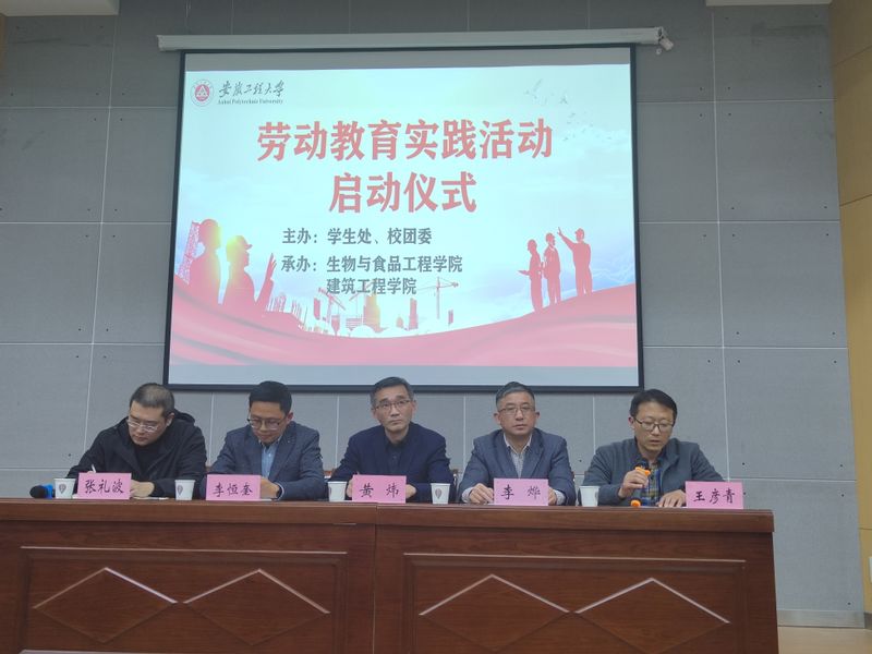 为深入贯彻落实习近平新时代中国特色社会主义思想和党的二十大精神,推进落实大学生新时代劳动教育,持续巩固深化“三全育人”工作成果,结合学校“三抓”工作实际,3月10日下午,生物与食品工程学院、建筑工程学院在C座三楼报告厅联合举行劳动教育实践活动启动仪式。校党委巡察办公室主任、学生工作部部长黄炜,建筑工程学院党委书记李烨,校党委学生工作部副部长、团委副书记李恒奎应邀出席活动,生物与食品工程学院党委副书记王彦青作动员讲话,建筑工程学院党委副书记张礼波主持会议。