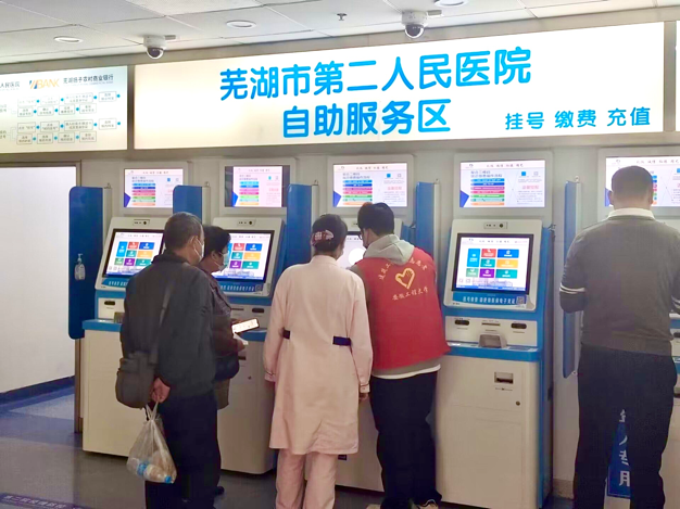 医院导医活动。志愿者们分别前往了芜湖市第一人民医院和第二人民医院进行了导医活动,协助市民使用自助服务机器进行挂号、缴费等操作,给市民提供了更加便捷高效的就医服务。
