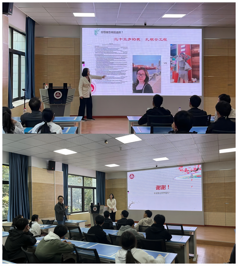 讲座伊始,谈昕老师根据自己的人生经验,提出了“做自己未来的掌舵人”论点,随后谈昕老师分别从学习、工作及生活三大方面展开了讲座。谈昕老师指出现在的你们可能对生活有点迷茫、不知所措、没有目标、失去方向,不过没关系,我们这个年纪的时候也是这样,但要牢记,不要冲动,不要心急,沉着冷静的面对眼前的困难,总会找到解决的办法。此外,谈昕老师分享了自己的求学经历和体会,引领同学们感受不一样的学科领域,见识到科研的魅力,激发了同学们对于自身专业学习的激情。