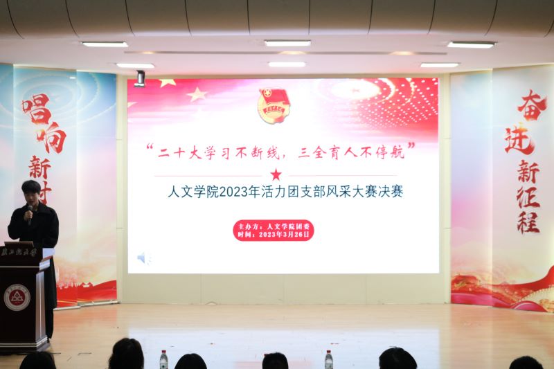 经过前期学院对各团支部综合考核,共有六个团支部进入决赛展示。决赛分为团支部展示(ppt)、团支部才艺展示、党团知识竞答三个环节。第一环节中各团支部针对如何建设五好团支部,重点围绕支部建设、支部成果和支部风采三个方面进行现场展示,汇报精彩纷呈,全方位、多层次地展示了团支部的无限活力。第二环节的团支部才艺展示,他们或演讲、或合唱、或主题宣讲,虽形式不同,但却无一不体现了人文学院学子的青春、激情与活力。第三环节采用必答+抢答相结合的形式,考察团员对党的二十大精神和全国两会精神等党、团知识的掌握,各团支部参赛同学积极抢答,现场竞争热烈。