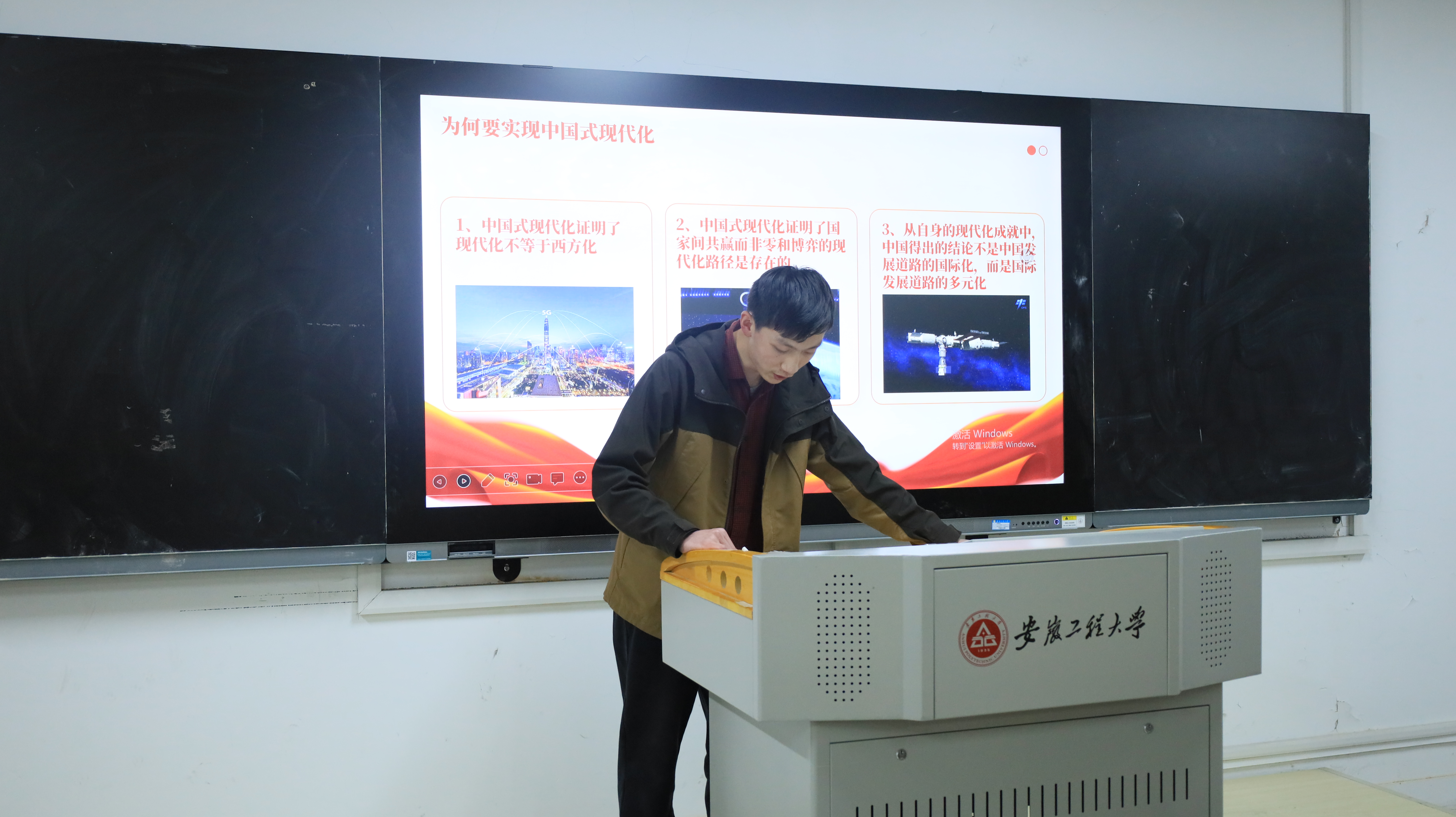 随后,团委学生会功能型团支部开展“党的二十大精神宣讲”主题团日活动。本次活动邀请校理论宣讲团朱接宇同学围绕“何为中国式现代化”“为何要实现中国式现代化”“如何实现中国式现代化”及“徽程学子在现代化的卓越表现”四个方面展开理论宣讲,强调了中国式现代化在当代的重要作用,展现了徽程青年的智慧与力量,激励团员青年为实现中国式现代化贡献力量。
