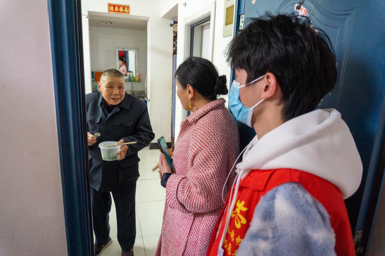 关爱空巢老人,传递温暖力量。青团蒸熟后,由同学们进行装盒打包,在工作人员的指引下分组送给社区内的空巢老人,为他们送去温暖与关怀,与他们共同品尝春天的美好味道。