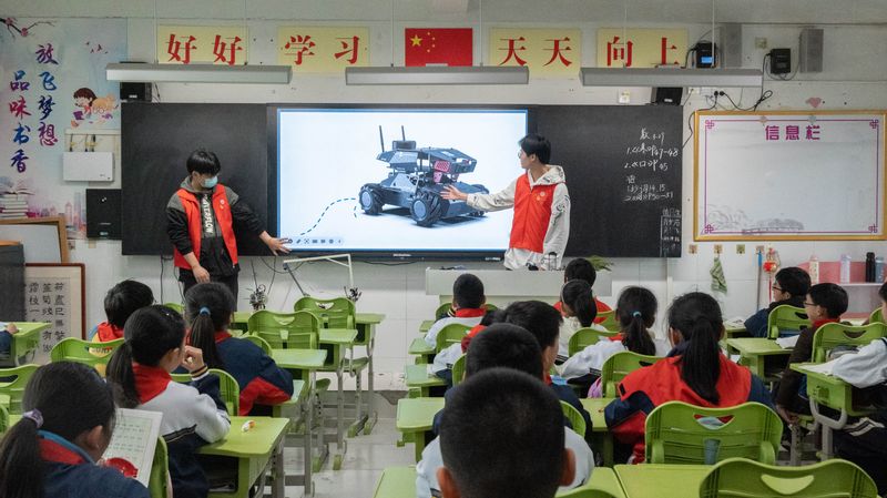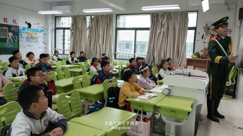3月29日下午4点半,伴随着下课铃响,我校“木槿花”明日行知·青悦课堂志愿服务项目团队来到安徽师范大学附属外国语学校城东校区小学部,走进四年级教室,讲述科技成就、展示建筑模型和智能车、开展国旗教育等,给小学生们带来了一堂堂生动有趣的课后服务课程。