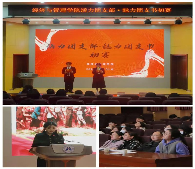为进一步提升我院共青团组织的引领力、组织力、服务力和大局贡献度,深入学习贯彻党的二十大精神,落实“三抓”和“三全六专”工作要求,提升团支部活力,巩固和创新学院团支部建设,经济与管理学院于3月31日晚上六点半在七楼报告厅举办了2022年度活力团支部·魅力团支书大赛比赛。此次活动邀请了校团委挂职副书记钱涛、校团委宣传科科长孙琳瑶、计算机与信息学院团委书记吕寅担任评委。