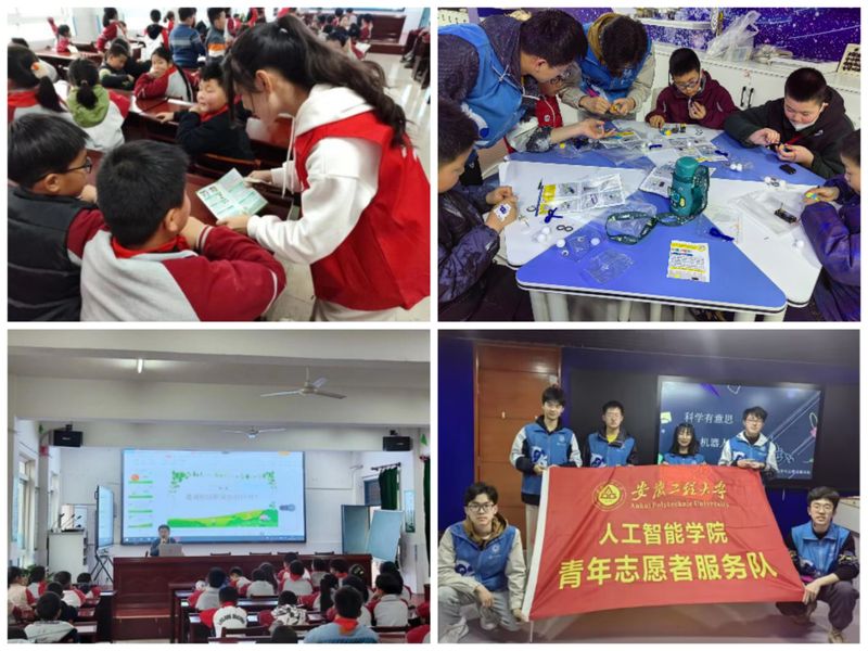 社区实践“和”起来。人文学院“阳光之旅”青年志愿者服务队在东苑小区开展“金盏花”社区矫正人员的子女支教活动,与孩子们进行交流,引导其探索个性化学习方法与生活节奏,传播志愿精神,展现真挚的人文情怀。人工智能学院在芜湖科技馆开展科普课堂活动,为小朋友们讲解爬虫机器人的研发灵感以及制作过程,带领小朋友们前往科学知识的殿堂。经济与管理学院开展“雷力锋行”志愿服务接力行活动,通过分发“反诈app”宣传单,向现场群众科普安装“反诈app”的重要性并提醒老年人预防诈骗。