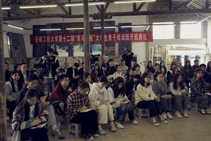 为深入学习宣传贯彻党的二十大精神,着力丰富“青马工程”培养内涵,4月15日上午,学校第十二期“青马工程”骨干培训班在湾沚区陶辛镇七房艺术村“艺术粮仓”开班。湾沚区委书记殷琼,校团委副书记李恒奎、周海林,校团委全体人员,各学院团委负责人,本期青马班全体学员参加典礼。典礼由外国语学院团委负责人张君主持。