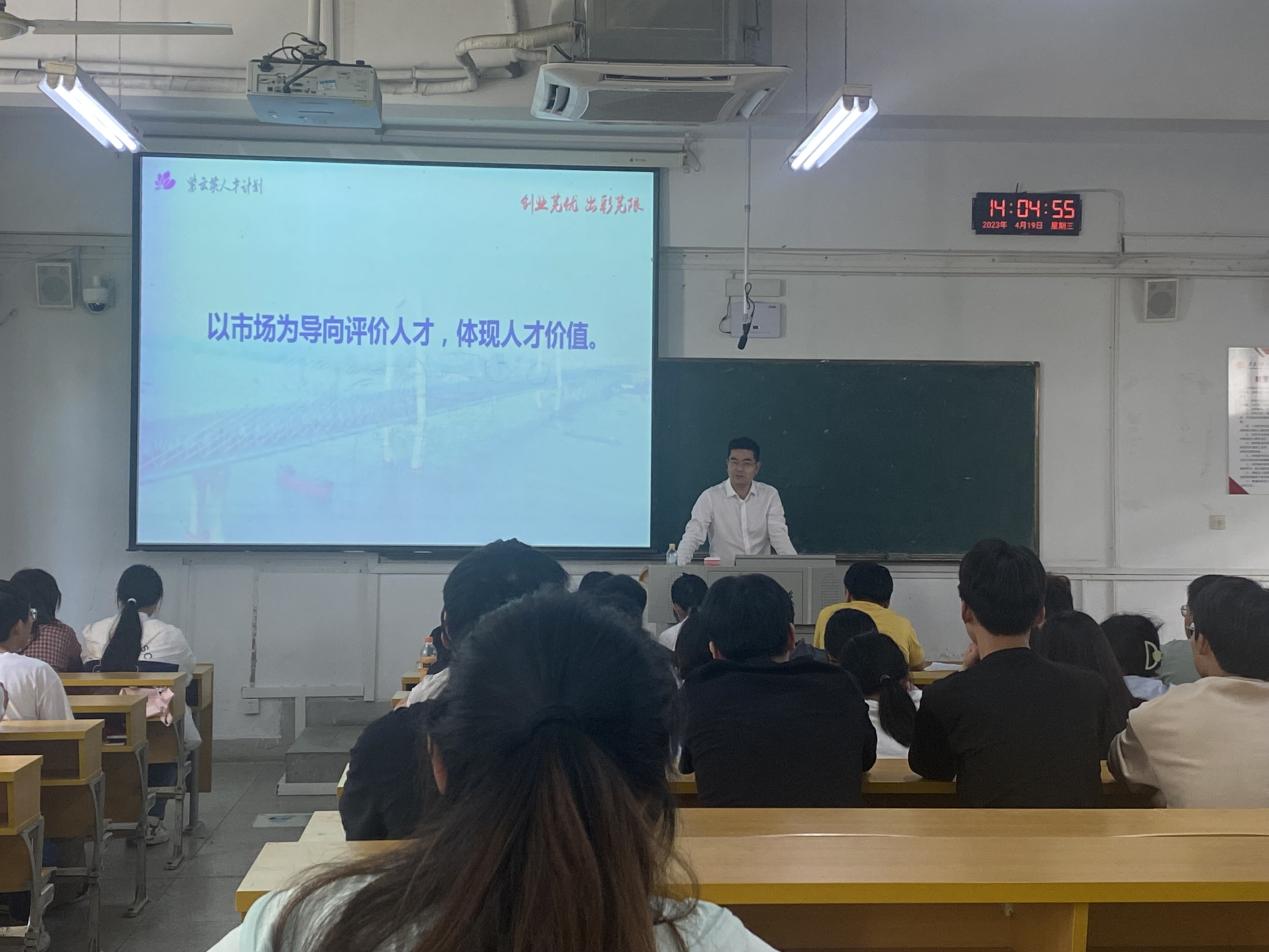 活动伊始,陆照海从对“人才”的理解导入主题,介绍了芜湖市的历史文化,并结合奇瑞汽车、海螺集团等芜湖市代表企业的发展历程详细解读了芜湖产业发展状况、“紫云英”人才计划及就业创业政策。他建议同学们在大学中除了注重专业能力的培养,还要重点参加志愿服务、社会实践和创新创业竞赛等拓展活动,全面提升自己的综合能力。最后,他诚挚欢迎大学生留芜就业创业,成为芜湖建设发展的人才力量。