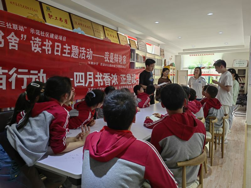 随后,同学们围绕“你更喜欢纸质阅读还是电子阅读”开展讨论,根据自主选题分为正方、反方两组,学生代表分别作为队长加入小组讨论。正、反两方开展了激烈的辩论,一一表达自己的观点和看法。小学生们积极为队长出谋划策,为总结陈词提供思路。大家积极表达自己的观点与阅读习惯,现场气氛热烈。辩论赛后,小学生们还进行了了跆拳道、舞蹈、合唱等才艺展示。