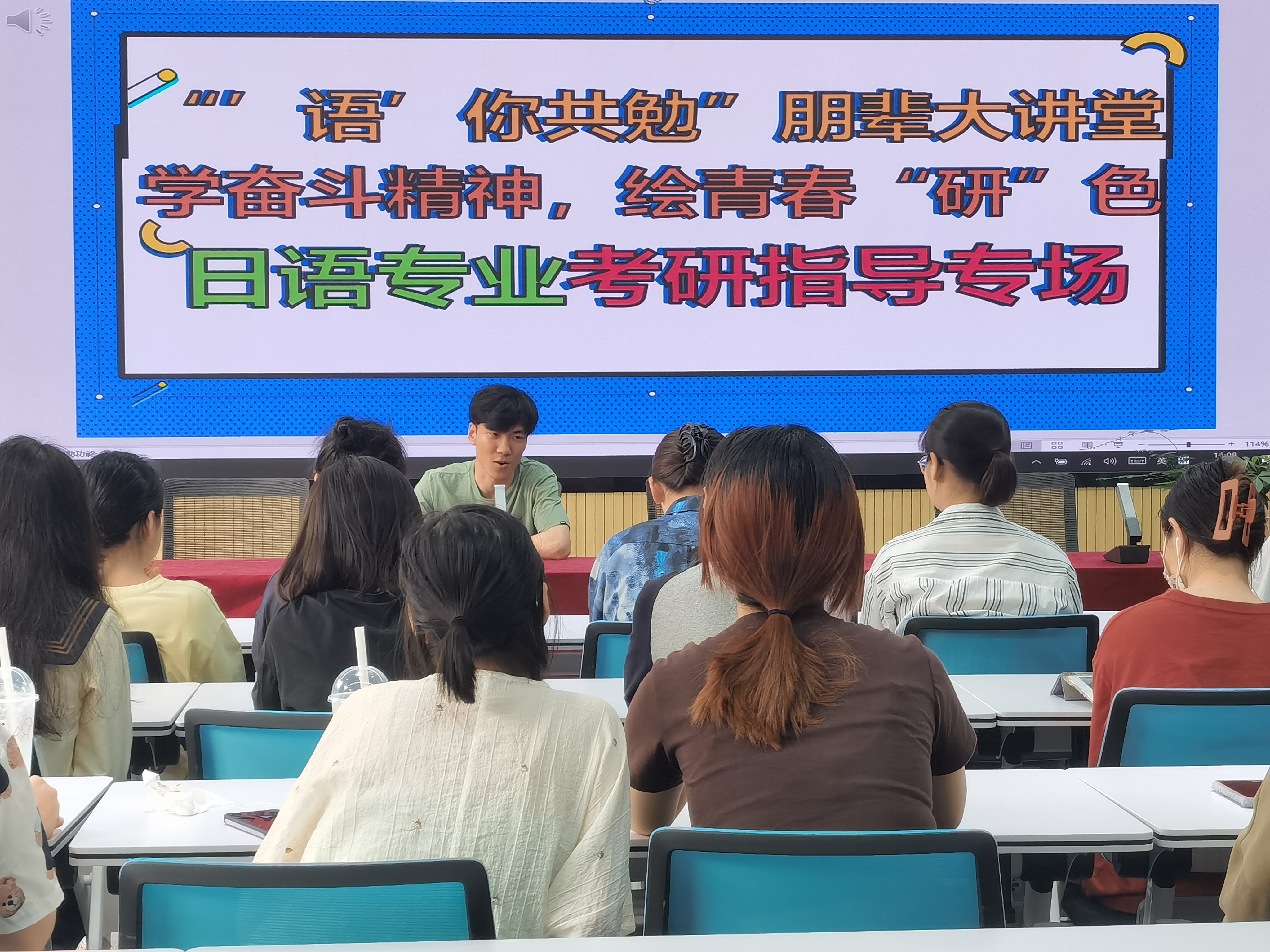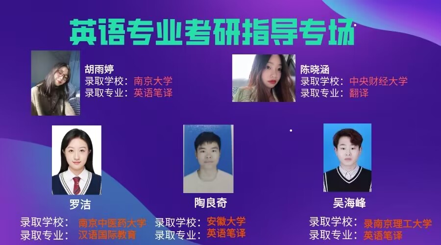 为深入落实学校“三抓”和“三全六专”工作要求,进一步加强学院学风建设,外国语学院通过线上线下相结合的方式,在4月19日和4月26日分别举办了两场主题为“学奋斗精神,绘青春‘研’色”的考研经验交流会。被南京大学、外交学院、吉林大学等知名院校录取的9名考研上岸同学应邀分享成功经验和备考技巧,120余名大二和大三同学参加交流会。