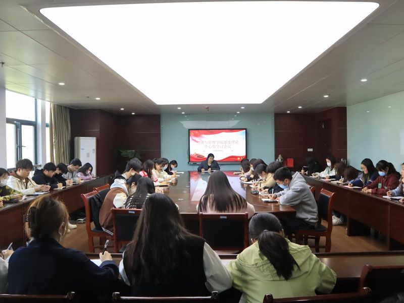 为深入贯彻学习党的二十大精神,在全面学习、全面把握、全面落实上下功夫,经济与管理学院于2023年4月26日下午在C座818召开第二次团委理论学习中心组学习(扩大)会议。学院团委书记赵恒梅主持学习并讲话。