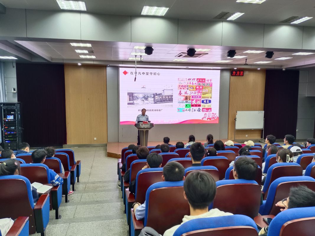 汇聚榜样力量,传递劳模匠心。为进一步推进共青团1+14共建合作,4月27日,计算机与信息学院与安徽中烟芜湖卷烟厂联合举办“劳模进校园 讲述‘匠心梦’”主题教育活动在5教117举行。芜湖卷烟厂卷接包车间四支部书记、副主任、高级技师、安徽省“五一劳动奖章”获得者胡风华同志走进校园,与我院师生面对面交流,讲述自己的匠心故事,用劳模精神激励引领广大学生,进一步发挥劳模工匠榜样示范作用,用初心使命感召学生、用奋斗经历感动学生、用先进事迹感染学生,引领青年学子为推进中国式现代化贡献力量。芜湖卷烟厂部分青年党员,学院青马班、入党积极分子培训班和发展对象培训班全体学员参加本次活动,活动由院党委副书记孙德茹主持。