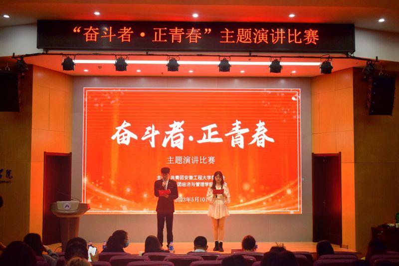 比赛中,30组来自各学院的选手围绕“奋斗者·正青春”的比赛主题,结合自身成长经历,表达了新时代中国青年将时代发展融入个人理想的使命担当,体现了当代团员青年坚定不移跟党走、为党和人民奋斗的真挚情感,展现了在实现中华民族伟大复兴的时代洪流中奋发图强、勇毅前进的精神面貌。物流221班程畅用《以青春奋斗之名,乐然赴徽程之约》的主题演讲将同学们拉回了初入徽程的日夜,在徽程结识了志同道合的伙伴,遇到了诲人不倦的老师,得到了那些展现自我的机会和实现自我价值的契机,真正实现了“乐”起来。来自机器人212的邓建华则讲述了自己“勤”起来的故事,曾担任芜湖科技馆、芜湖轻轨等多地志愿者的他经验丰富,感想颇多,在演讲台上他侃侃而谈,讲述着自己在志愿路上的奉献经历,鼓舞着更多伙伴加入志愿服务之路,在志愿服务中厚植家国情怀。青春当以爱国为旗帜,国贸222张白玲以“正”起来为演讲底色,用“但使龙城飞将在,不教胡马度阴山”的报国之心塑形,将属于中国青年的热血之心充分刻画展现出来,同时把比赛推向了高潮。“壮”起来,是六专离不开的话题,机器人202夏海彬在《壮起来——热血铸军魂》演讲中,以入伍考学后的种种经历重新诠释了自己对“壮”的认识,“壮”是拿着武器的士兵,也是时代青年应在身体素质和心理状态两方面充实自己。服表221的伍韵伊则是在“学”起来的角度,从司马光滚枕读书、方仲永渐失才华到当代青年奋进之路的事例说明勤奋的人能成为天才,努力可以突破平庸。