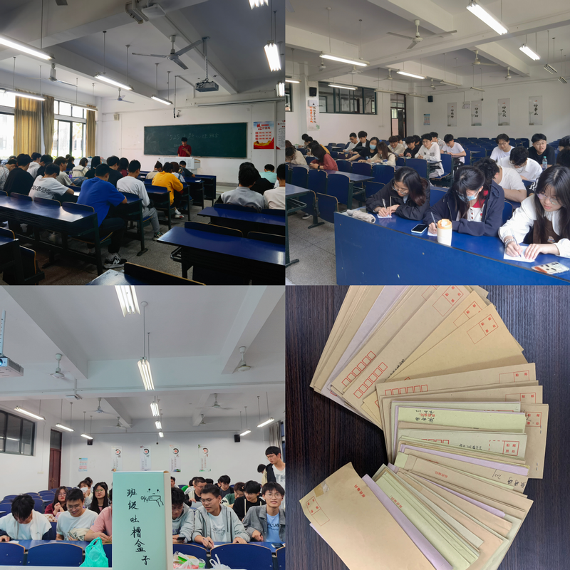 朋辈互助,寄语未来。5月8日-5月25日,全院27个班级分别由心理委员组织开展一场趣味心理班会,含“吐槽盒子”、“写给毕业季/十年后的自己的一封信”等多项趣味环节。班会中,各班级同学分别写下近期在校生活中所遇到的心理压力和困扰,放入“吐槽盒子”,由心理班委和其他班委一同从朋辈角度进行抽取解答,在增强班级凝聚力的同时,更在轻松的班会氛围中解答了同学们的心中烦恼。心理委员们还组织班级同学共同书写“写给毕业季/十年后的自己的一封信”,鼓励同学们在憧憬未来的同时,加深对未来规划的思考,各班级同学经过深刻思考后,纷纷认真写下想对来的自己所说的话,最后认真封装,待来日启封。