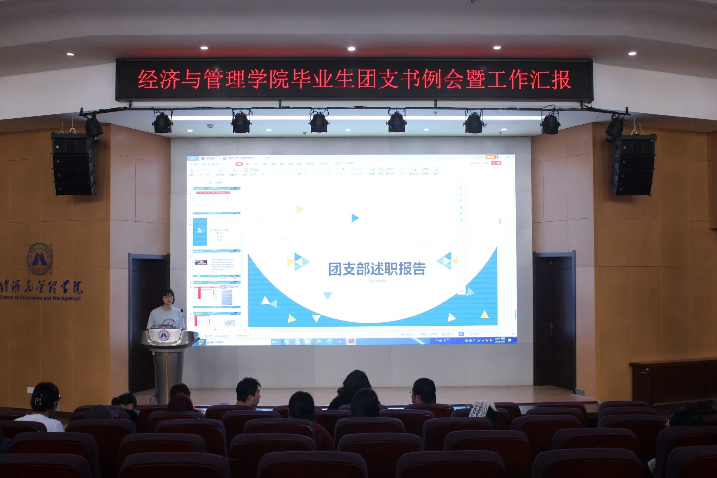 2023年5月25日下午,经济与管理学院在C座7楼报告厅召开2023届毕业班团支书工作会议。学院党委副书记刘海涛、团委书记、毕业班辅导员、毕业班团支书、副团支书等共同参加。本次会议由赵恒梅主持。