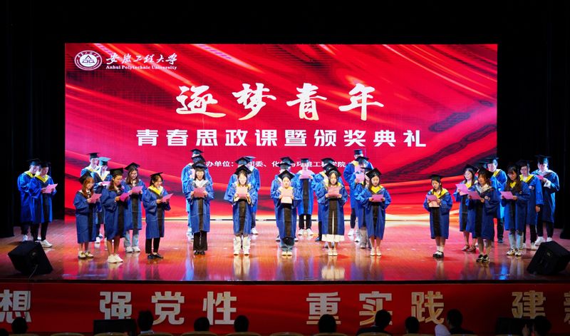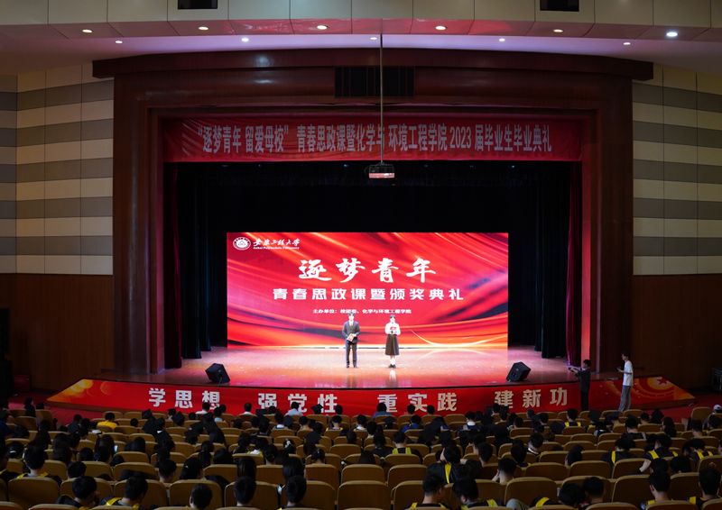 为深入学习宣传贯彻党的二十大精神,高质量开展学习贯彻习近平新时代中国特色社会主义思想主题教育,推深做实学校“三抓”和“三全六专”工作要求,5月27日下午,由校团委、化学与环境工程学院主办的“逐梦青年 留爱母校”青春思政课暨表彰大会在师生活动中心大礼堂隆重举行。校党委副书记苏国红、江苏蓝必胜化工环保股份有限公司副总经理徐林兰,蓝必盛工程经理黎飞虎,应化02级校友、苏州大学特聘教授、博士生导师程亮,安徽卫生健康职业学院医学系副主任余晨辉,学生处副处长郭全根,校团委副书记李恒奎,宣传部副部长王燕,化环学院党政领导出席活动。学院各系部主任、全体辅导员、兼职辅导员、班主任、教师代表和2023全体届毕业生和各年级学生代表参加典礼。