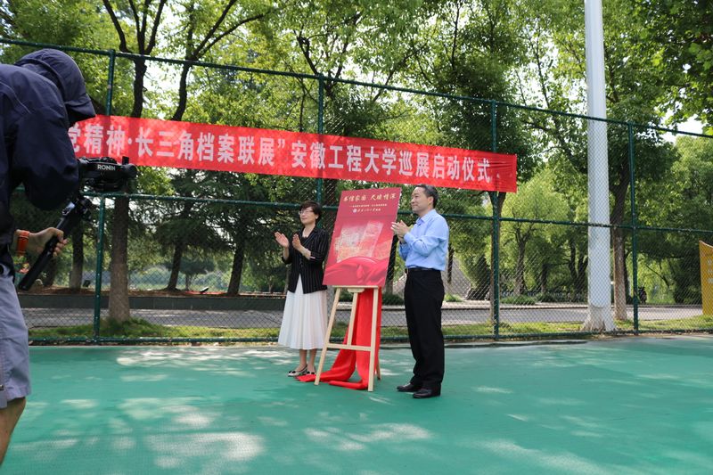 为深入开展学习贯彻习近平新时代中国特色社会主义思想主题教育,弘扬伟大建党精神,激发强大奋进力量,校团委、图书馆、经济与管理学院、马克思主义学院联合芜湖市档案馆共同举办“书信家国 尺牍情深——弘扬伟大建党精神·长三角档案联展”活动。6月8日上午,芜湖巡展首站启动仪式在学校第一田径场举行。校党委副书记苏国红,芜湖市委宣传部副部长、市委史志室主任魏超,市档案馆馆长何学东,市委史志室副主任龙遗华出席启动仪式。经济与管理学院、马克思主义学院党政领导班子及学生代表,芜湖市委史志室、芜湖市档案馆相关部门代表等参加了启动仪式。仪式由校团委副书记李恒奎主持。