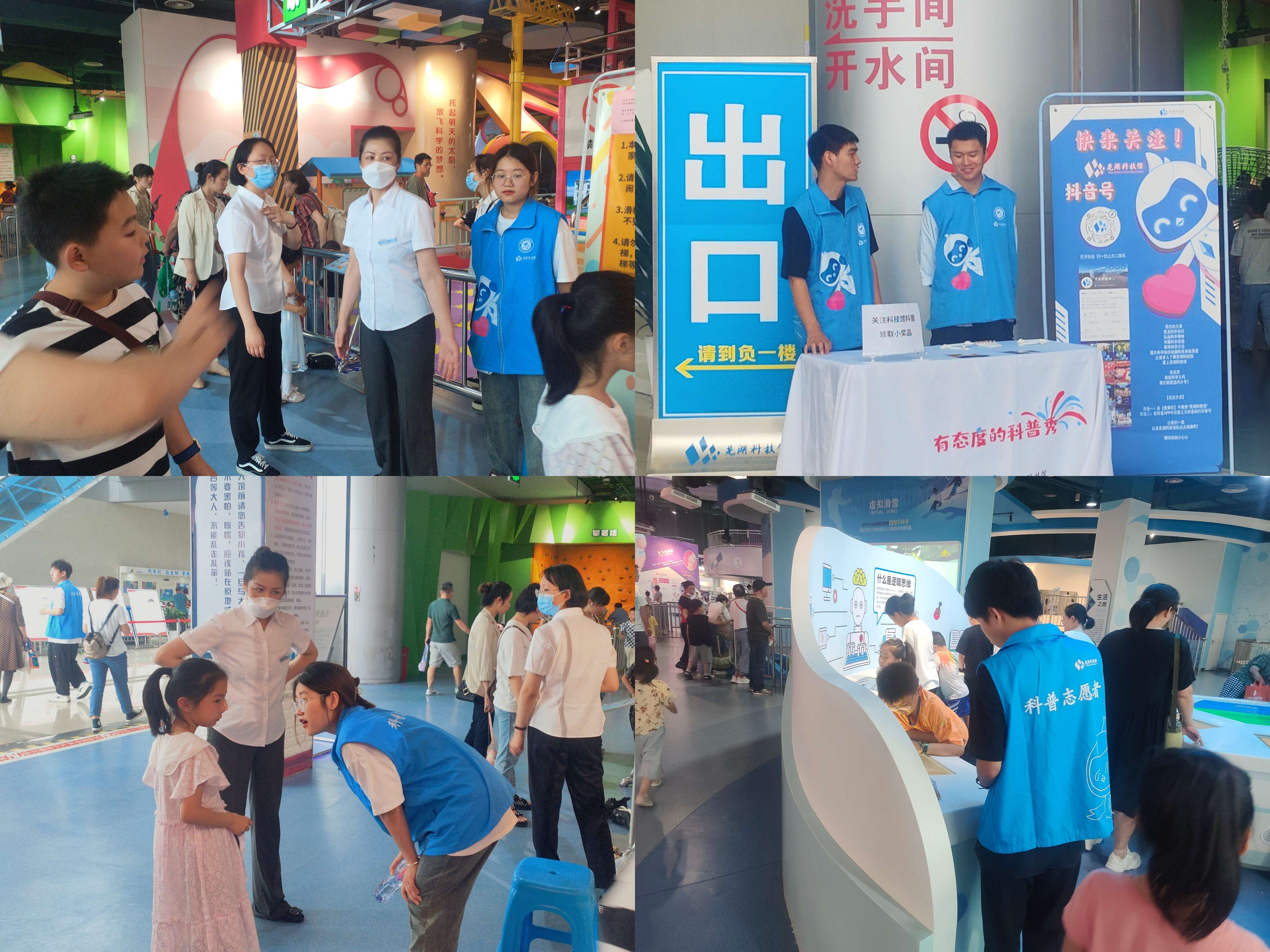 志愿者分布在不同的场馆内,协助工作人员进行展品讲解、游客接待、知识普及等各类型志愿服务工作。期间,还需要维护馆内秩序、进行现场安全提示等工作,志愿者们不怕辛苦,在科技馆内站好每一班岗,尽好自己的职责,为芜湖市民提供更好的服务。该团队依托场馆科普资源优势,协助芜湖科技馆多次开展科普知识讲座、编程教育等科学体验活动,让更多孩子有机会接触科学热爱科学。