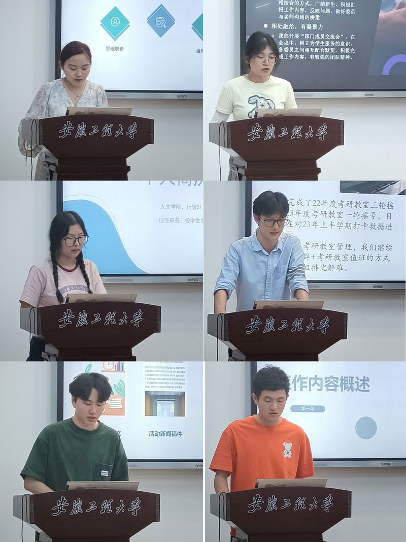 会上,校学生会主席团成员、各部门负责人依次述职,从政治态度、学习情况、道德品行、工作成效、纪律作风五个方面进行汇报,全面梳理和总结个人在2022-2023学年第二学期开展的工作,并对工作完成情况和实际效果进行客观分析,总结经验教训,探究深层次原因。针对如何优化活动、强化组织建设等方面的工作,大家提出了建议和规划。参会老师、同学代表分别对述职汇报人进行现场打分评议。