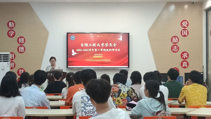 为积极推进学生会深化改革走深走实,6月9号,校学生会2022-2023学年第二学期述职评议会在在师生活动中心第二课堂中心成功举行。校团委兼职副书记张松、学生处秘书赵静云、校学生会秘书长孙琳瑶、经济管理学院学生会主席团成员唐倩、建筑与工程学院学生会主席团成员蔡习文担任评审,校学生会全体成员参加会议。