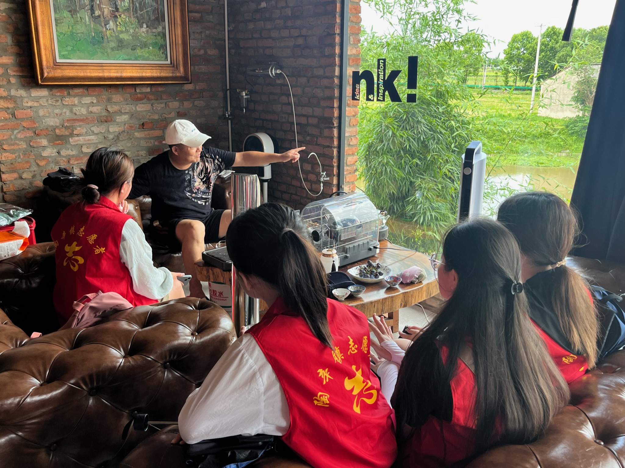 深入艺术村,感受陶辛旅游发展变化。7月2日,实践团队在指导老师张君带领下一同来到七房村,感受艺术气息和旅游产业发展脉搏。同行5人与七房艺术村的发起人承杰教授取得联系,在他的讲解下详细了解七房艺术村的发展历史、乡村旅游发展情况。七房村是承老师的家乡,他将艺术画作带到了七房村,把濒临拆除的七房粮仓保护起来,并建设成如今的“艺术粮仓”,给实践团队的师生留下深刻印象。实践团队的程子琦同学就表示,“七房村不仅处处是艺术画作,其本身就是体现七房人乡土情怀的一件精美艺术品”。