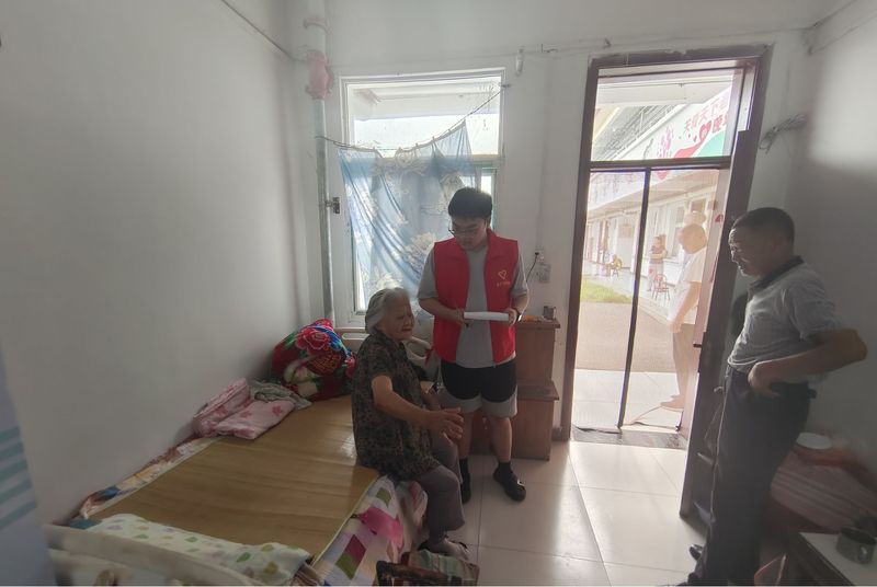 院内也有部分老人因为年龄问题,听力、视力等方面都出现了不同程度的问题,活动人员不能与其进行正常的交流,只能依靠养老服务中心的看护人员进行传话交流。其中有一位99岁的老奶奶,在看到团队成员向她走近时,忙起身迎接并拉住我们的手问道:“这是哪里的领导又来看我们了”,活动人员立刻向前搀扶让她坐下“奶奶,我们并不是什么领导,我们只是大学生下乡过来看看您的”,老奶奶很激动的一连说了几个好字。在探访过程中,院内的老人在得知有人来看望他们的时候,都表现的非常激动和热情。