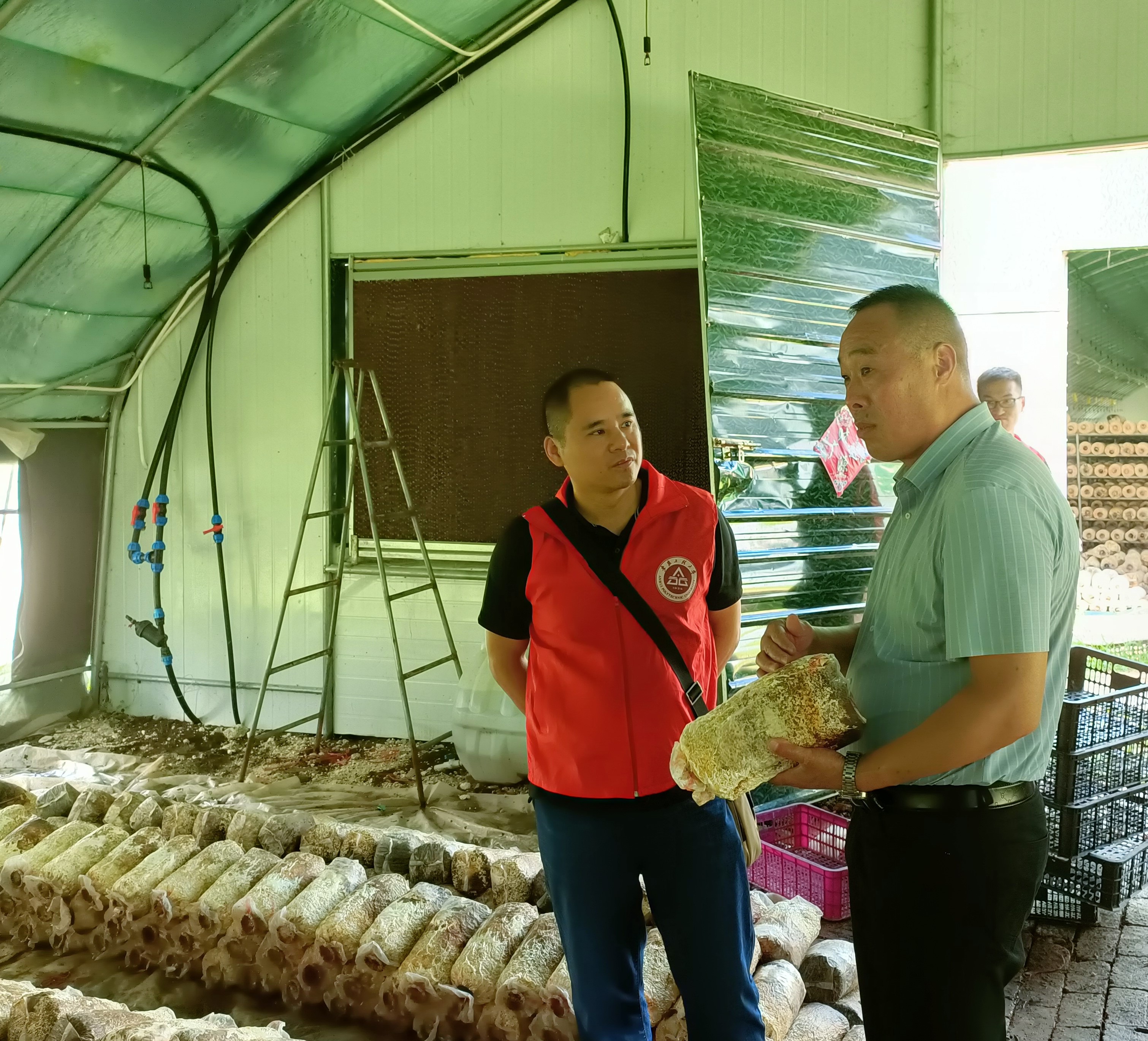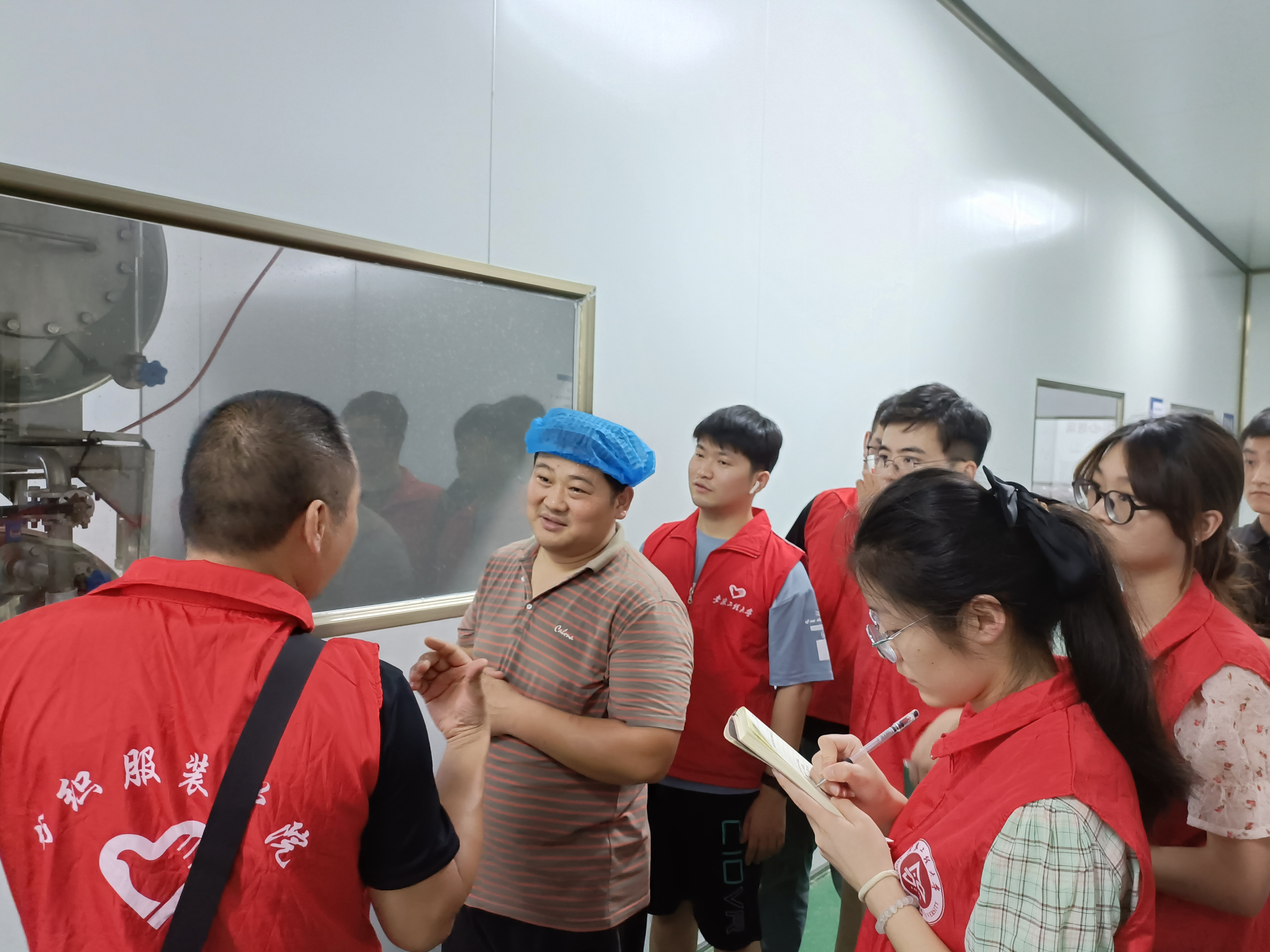 特色产业寻共性,助力乡村促振兴。7月5日上午,团队成员冒着炎炎烈日来到利辛县汝集镇中华现代农业产业园、利辛县众兴食品有限公司,走入农业大棚与加工车间,深入了解国家乡村振兴战略和现代农业产业园的落实状况。通过实地走访和交流,收集了当代农村农产品的电子商务以及新产品研发方面存在的若干问题,为后续帮扶活动的开展提供了方向。