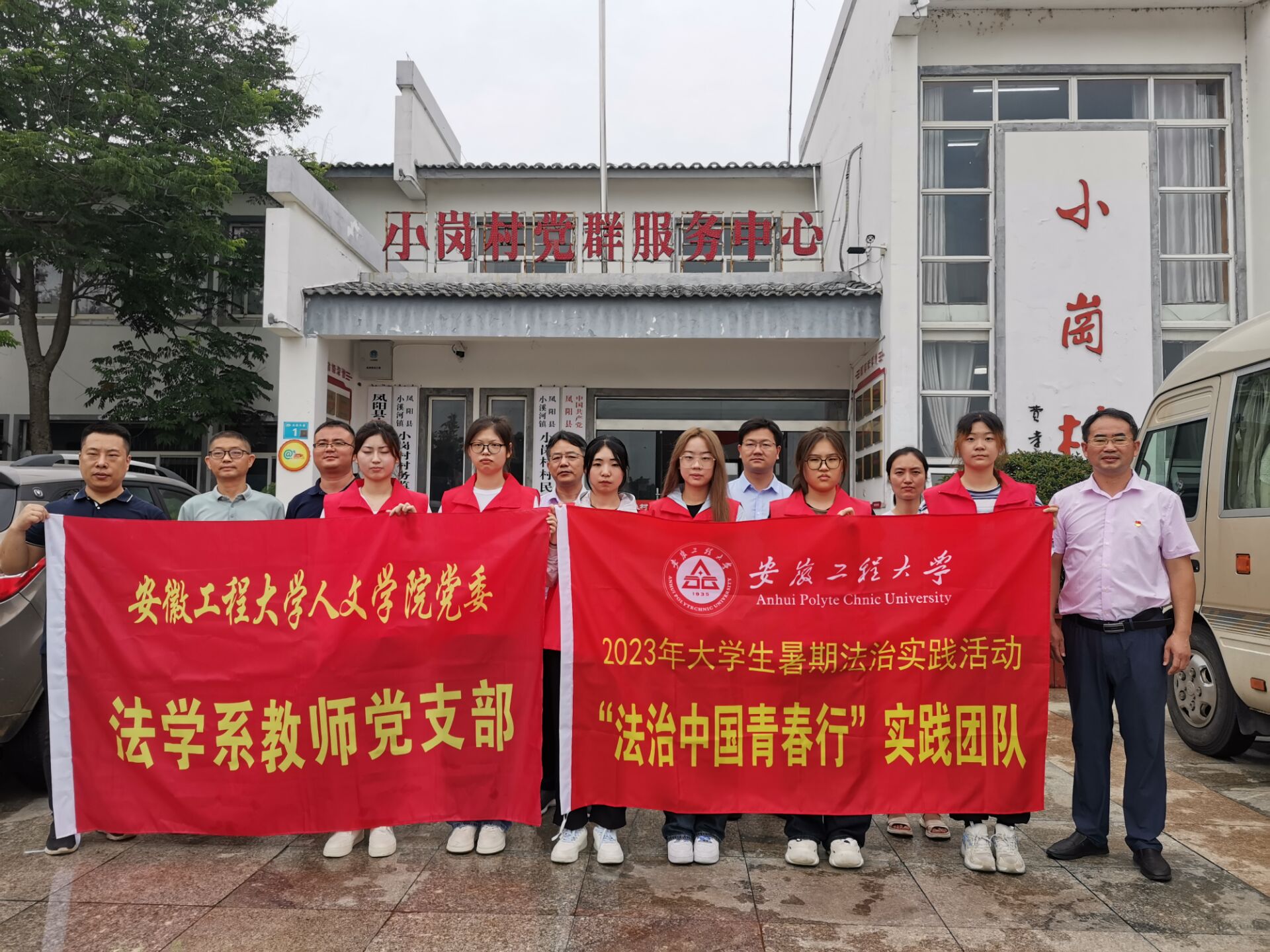 根据《安徽省教育厅关于开展2023年全省大学生暑期法治实践活动的通知》(皖教秘政〔2023〕48号)和《安徽省教育厅关于开展2023年全省教育系统“江淮普法行”活动的通知》(皖教秘政法〔2023〕54号)精神,人文学院积极响应团中央“法治中国青春行”暑期法治实践活动号召和安徽省教育厅“江淮普法行”活动号召,组织实施大学生志愿者深入全省典型社区、农村、机关、校园和企事业单位,开展大学生暑期法治实践活动。2023年7月上旬,安徽工程大学大学生暑期法治实践活动在安徽省滁州市琅琊区和凤阳县等实践点持续开展。在前期各实践队分散开展普法宣传和专题调研等法治实践活动的基础上,7月13日—7月14日,安徽工程大学暑期法治实践活动之滁州市凤阳县暑期法治实践队和滁州市琅琊区暑期法治实践队联合人文学院法学系教师党支部,集中在凤阳县小溪河镇小岗村、凤阳县临淮关镇太平社区和滁州市琅琊风景区管委会三个暑期法治实践点开展法治实践活动。