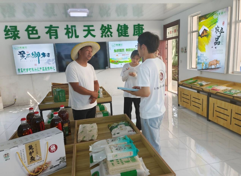 电商具有一定的前沿性和创新性,随着互联网的发展,农村电商成为了精准帮扶的重要手段,也成了产业振兴的重要组成部分。团队成员前往当地政府工作人员办公室展开采访。对于团队成员提出的问题,工作人员认真详细的答疑解惑。在采访中,团员了解到了许镇镇黄墓村的电商发展历程,工作人员对电商的看法,以及对未来的展望。同时,队员们还采访了当地居民,了解到当地主要是以油菜、水稻、小麦为主,收购、生产、加工、销售主要由党组织统一开展。团队成员根据走访调研结果,对当地电商发展模式提出了优化建议,认为最适合黄墓村通过电商售卖的产品为大米。