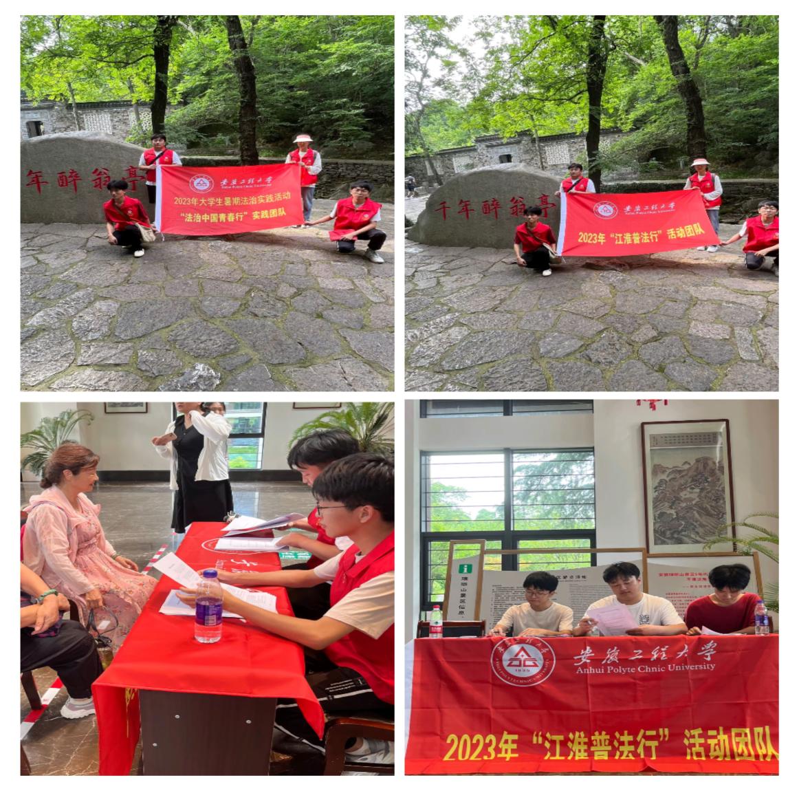 为深入开展学习贯彻习近平新时代中国特色社会主义思想主题教育,认真学习宣传贯彻党的二十大精神、习近平法治思想,根据《安徽省教育厅关于开展2023年全省大学生暑期法治实践活动的通知》(皖教秘政〔2023〕48号)和《安徽省教育厅关于开展2023年全省教育系统“江淮普法行”活动的通知》(皖教秘政法〔2023〕54号)精神,7月14日,人文学院大学生普法社会实践团队联合学院法学系教师党支部,赴安徽省滁州市琅琊区开展“法治青春中国行”和“江淮普法行”暑期“三下乡”社会实践活动。