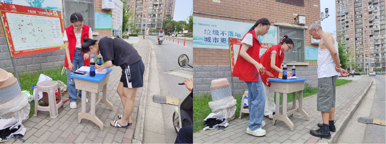 在活动准备阶段,团队成员通过线上收集资料、线下实地走访相结合的方式对社区内居民的居住情况进行了初步了解,结合实际制定了纸质版和电子版的调查问卷,根据团队成员的优势进行了详细分工。团队负责人提前与万春社区相关负责人进行对接,取得了对方的支持与鼓励,获取了方便发放和填写问卷的桌椅。