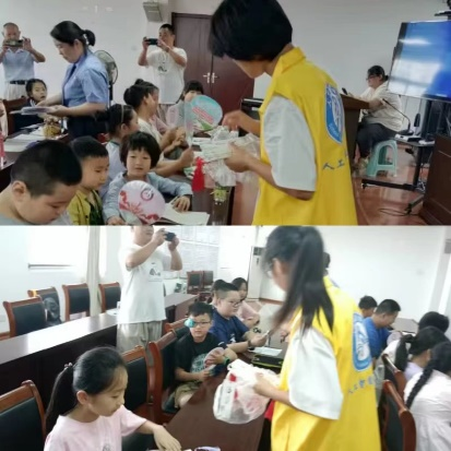 “彩虹课堂”流动儿童志愿活动主要内容为暑期功课辅导和趣味活动两部分。在社区开办的暑期托管班,孩子们安静的坐在座位上写作业,偶尔遇到难题,便举起小手向志愿者哥哥姐姐寻求帮助,志愿者们也十分耐心的为孩子们讲解题目,为他们辅导课业、答疑解惑。趣味活动也是妙趣横生:知识科普课堂,孩子们懂得了要明辨是非,尊重他人;民俗知识抢答赛,让孩子们感受到博大精深的中华优秀传统文化;室内趣味运动会,培养了孩子们团队合作,积极乐观的精神;脸谱制作、汉堡制作、笔架制作······,志愿者们协助老师布置现场,分发材料,陪同孩子们一起完成,多样的活动为孩子们过一个丰富多彩、充实快乐的暑假增添了一抹亮色。大学生志愿者们也在活动中收获了成长、快乐与感动。