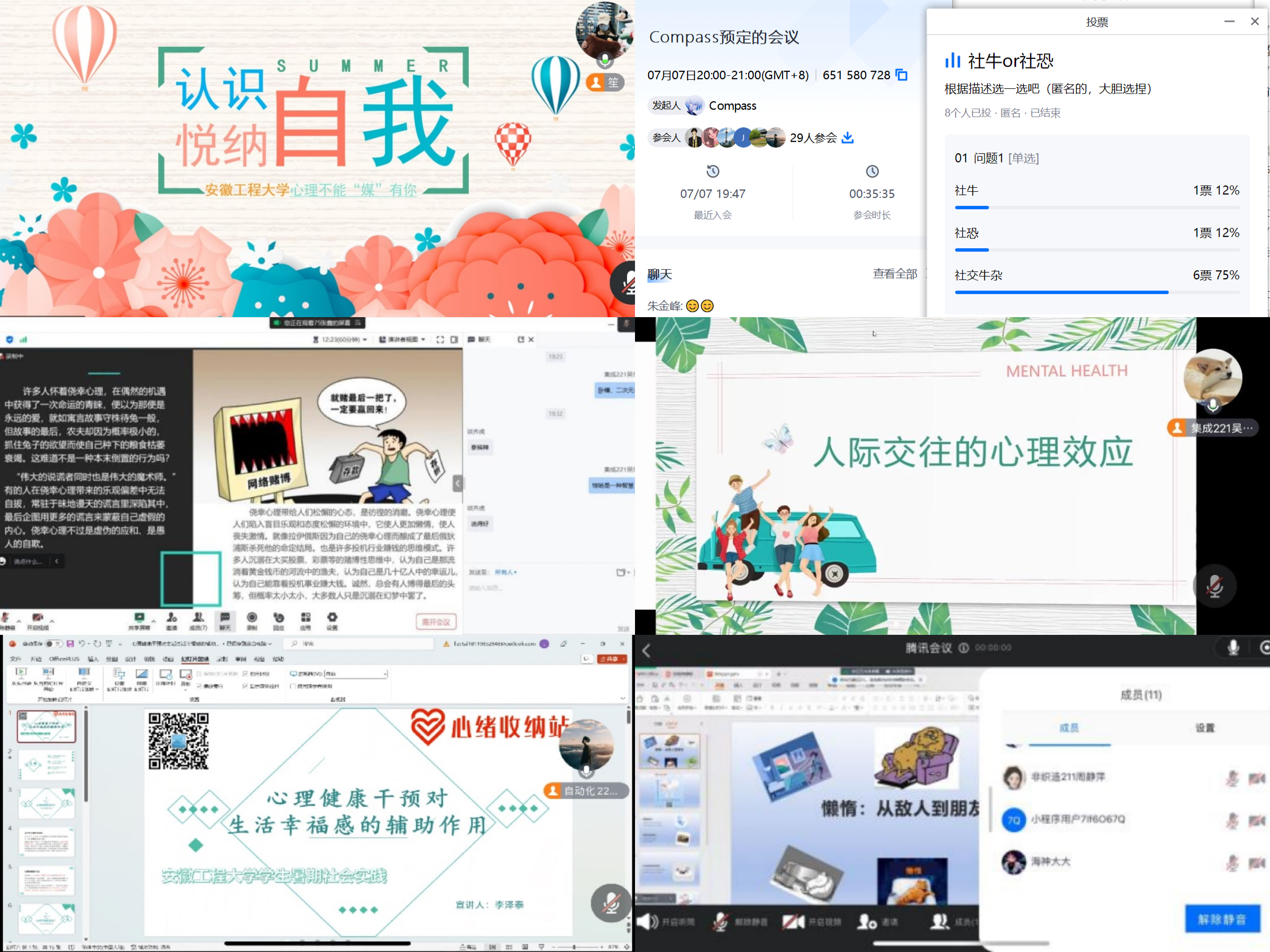 自7月份以来,实践团队拓展心理健康宣讲的深度和广度,采取“线上+线下”结合两种方式以德育心,把心理健康知识送到青少年身边。除团队成员深入家乡进行线下宣讲之外,团队不断创新服务模式,充分发挥线上课程特点和优势,为青少年带来了7场线上心理健康专题宣讲,涵盖自我心理、人际交往、心理干预等内容,辐射近300名青少年。活动期间,团队成员深入江苏常州、安徽合肥、安徽宣城等地市,走进当地的烈士陵园、高中学校开展线下心理知识宣讲,并以小零食互动和情绪漂流瓶等方式让青少年宣泄情绪,打开情绪的话匣子。线上宣讲则以不同主题共同探讨如何建立积极的心态以及如何应对各种挑战,帮助大家更好地管理自己的情绪和压力,提高生活质量和幸福感。团队成员结束后说:“希望活动可以继续扩大影响力,为心理健康的宣传带来更多正能量。”