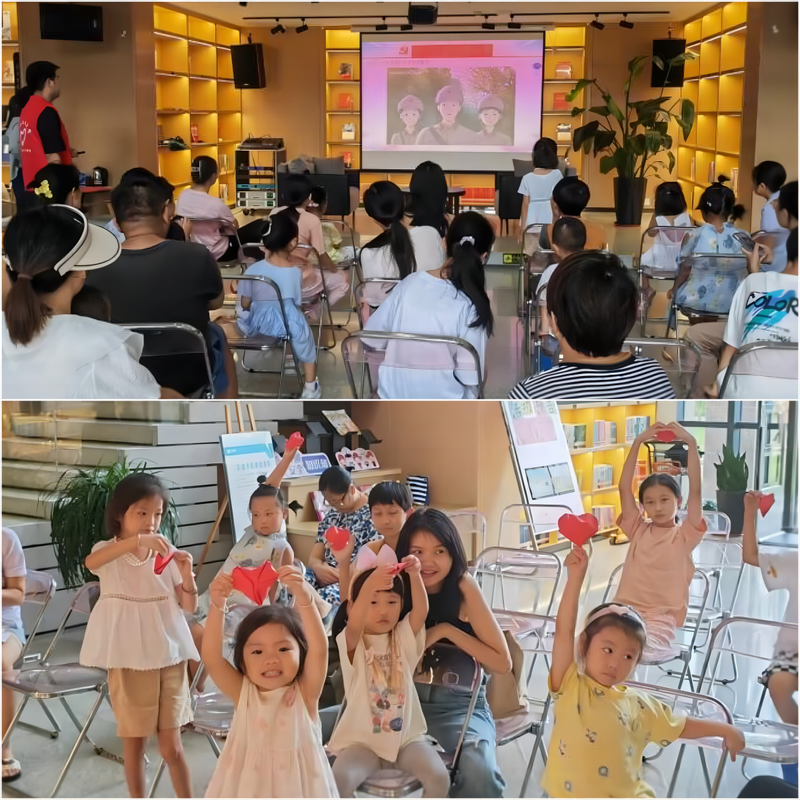 为传承红色基因,弘扬红色精神,加深青少年对红色故事的深入理解,小队于7月30日上午在赤铸书院举办了“徽程书韵,赤铸共赏”亲子共读会。面对小队志愿者的热情邀请,许多家长带着孩子积极地参与其中。在志愿者的带领下,学习红色经典故事、红色书籍共享活动、亲子手工实践折纸这短短三部分的活动内容很快结束了,但红色书籍中革命英雄的坚定不移、无私奉献、为信仰奋斗终身的精神却作为红色经典中宝贵的精神营养,激励着小朋友勇担时代使命,闪烁红心铸就辉煌。