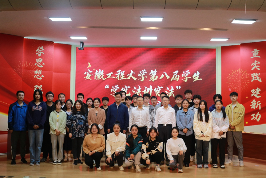 为全面学习贯彻党的二十大精神,深入学习贯彻习近平法治思想,推动青年大学生宪法学习宣传教育常态化长效化,落实好安徽省教育厅关于开展第八届全省学生“学宪法讲宪法”活动的通知要求,根据2023年6月26日学校党委宣传部《关于开展第八届学生“学宪法讲宪法”活动的通知》的要求,9月23日,由校团委、校法律协会主办,人文学院团委承办的安徽工程大学第八届学生“学宪法讲宪法”素养竞赛在学术报告厅举行。人文学院党委副书记王中江,校法律协会指导教师王存胜、邵志超,人文学院法学系副主任曹刚果,机械工程学院团委副书记王海燕,人文学院团委副书记利昕云出席,全校近200名学生共同在现场观看比赛。