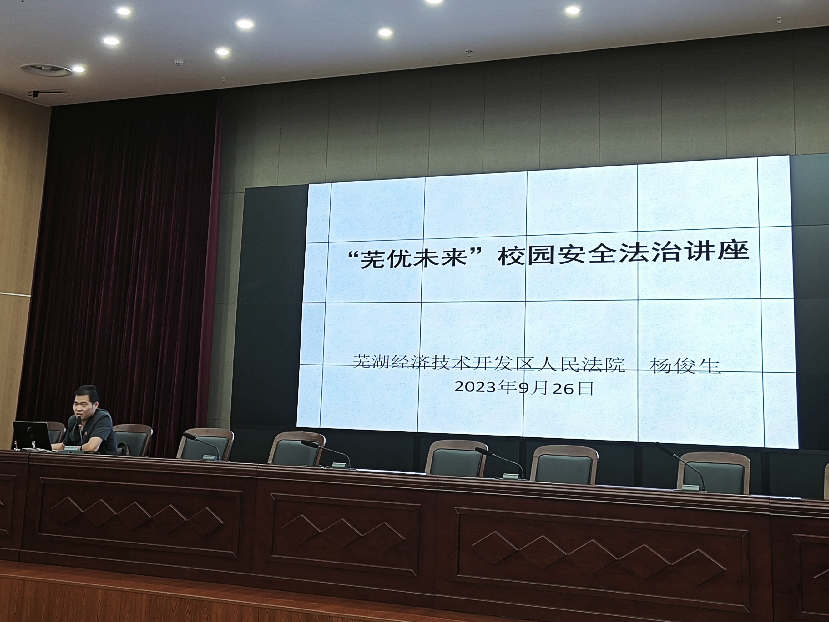 为进一步加强大学生法治教育,加大校园防诈骗宣传力度,普及反诈骗知识,增强学生的法治观念和安全防范意识,9月26日晚,学校聘请的“法治辅导员”、芜湖经开区法院民事审判庭副庭长杨俊生法官走进安徽工程大学开展法治教育及反诈骗知识宣传讲座,教育引导学生提高识骗、防骗能力,共同筑牢反诈防护墙。设计学院党委副书记彭海燕、学院新生辅导员、2023级全体新生参会,彭海燕主持报告会。