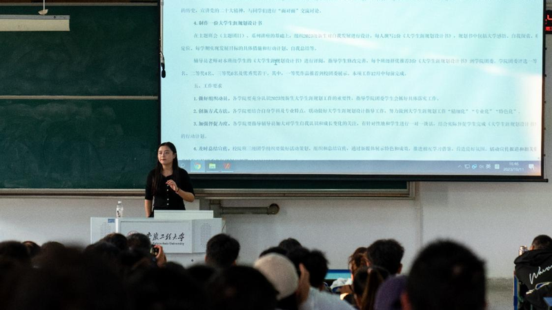 培训会上,程安琪用实实在在的例子教导新生不应该随波逐流虚度时光,鼓励同学们积极参加社会实践活动,多读书、多掌握技能,提高自我认识和价值。在实践中寻找到自己的学习目标甚至以后的工作目标,做出规划后要持续努力,脚踏实地。最后,程安琪向同学们介绍了“大学生涯规划大赛”的相关事宜,包括报名通道和提交作品的方法,并鼓励同学们勇于参加比赛,拓展认知面。