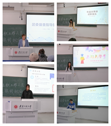 会议伊始,团学组织负责人和各部门负责人围绕工作职责、工作效果、存在不足、改进措施、未来工作安排等方面依次述职,回望过往奋斗路,展望未来新征程,为团学组织的接续发展立柱架梁。随后,各部门结合“三全六专”育人实践工作要求,就活动组织效率、部门沟通协作等问题进行交流研讨。最后,利昕云对团学组织各部门的工作成绩予以肯定,勉励团学组织全体学生干部继续秉持“全心全意为同学服务”的宗旨,常怀服务之心,始终把帮助青年解决问题作为工作的出发点和落脚点,在新学期继续发扬吃苦耐劳、奋勇争先的精神,取得更加优异的成绩。