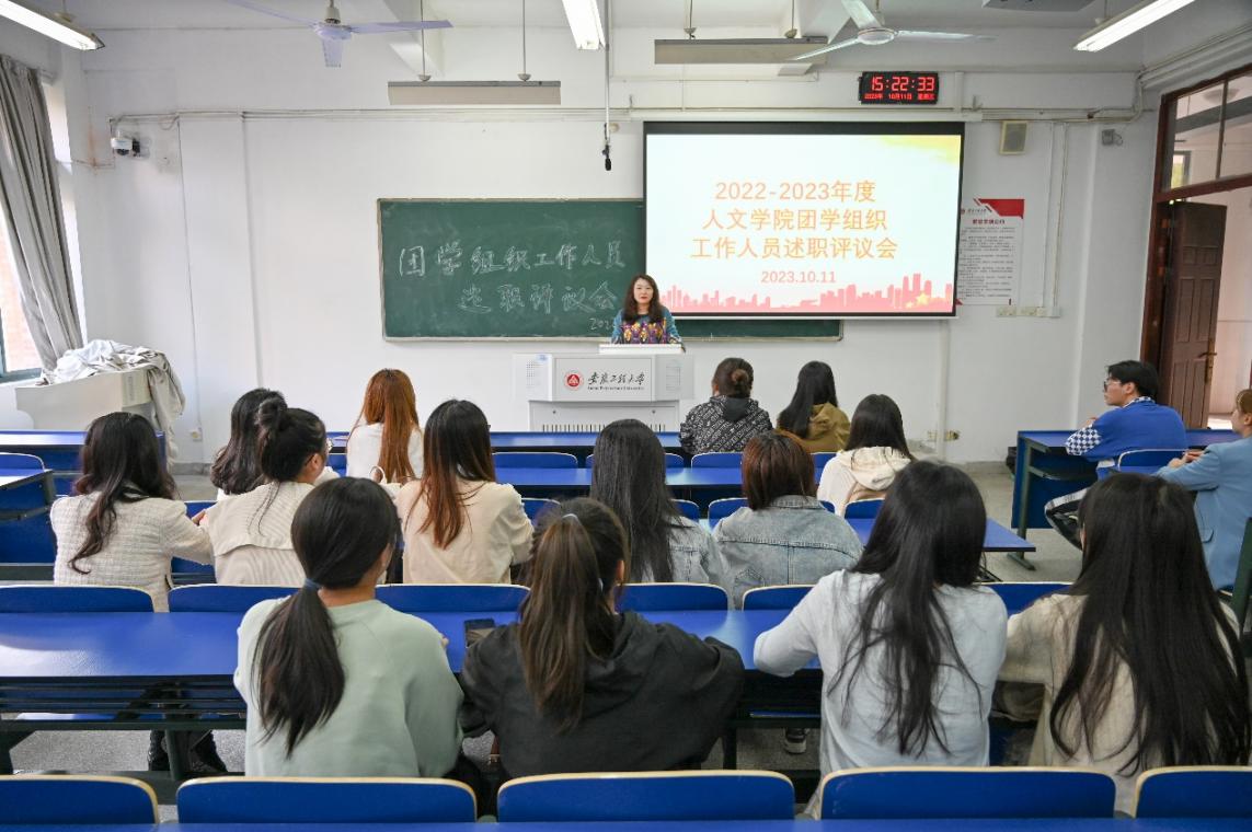 为深入学习贯彻党的二十大精神和习近平总书记关于青年工作的重要思想,推深做实“三全六专”育人实践,推动院团委学生会履行职责、发挥作用,切实加强团委学生会队伍建设,提高团学组织学生干部的责任意识、服务意识和大局意识。10月11日下午,人文学院在6教102教室召开团学组织工作人员述职评议会。人文学院团委副书记利昕云、团学组织学生干部代表参加了本次会议。